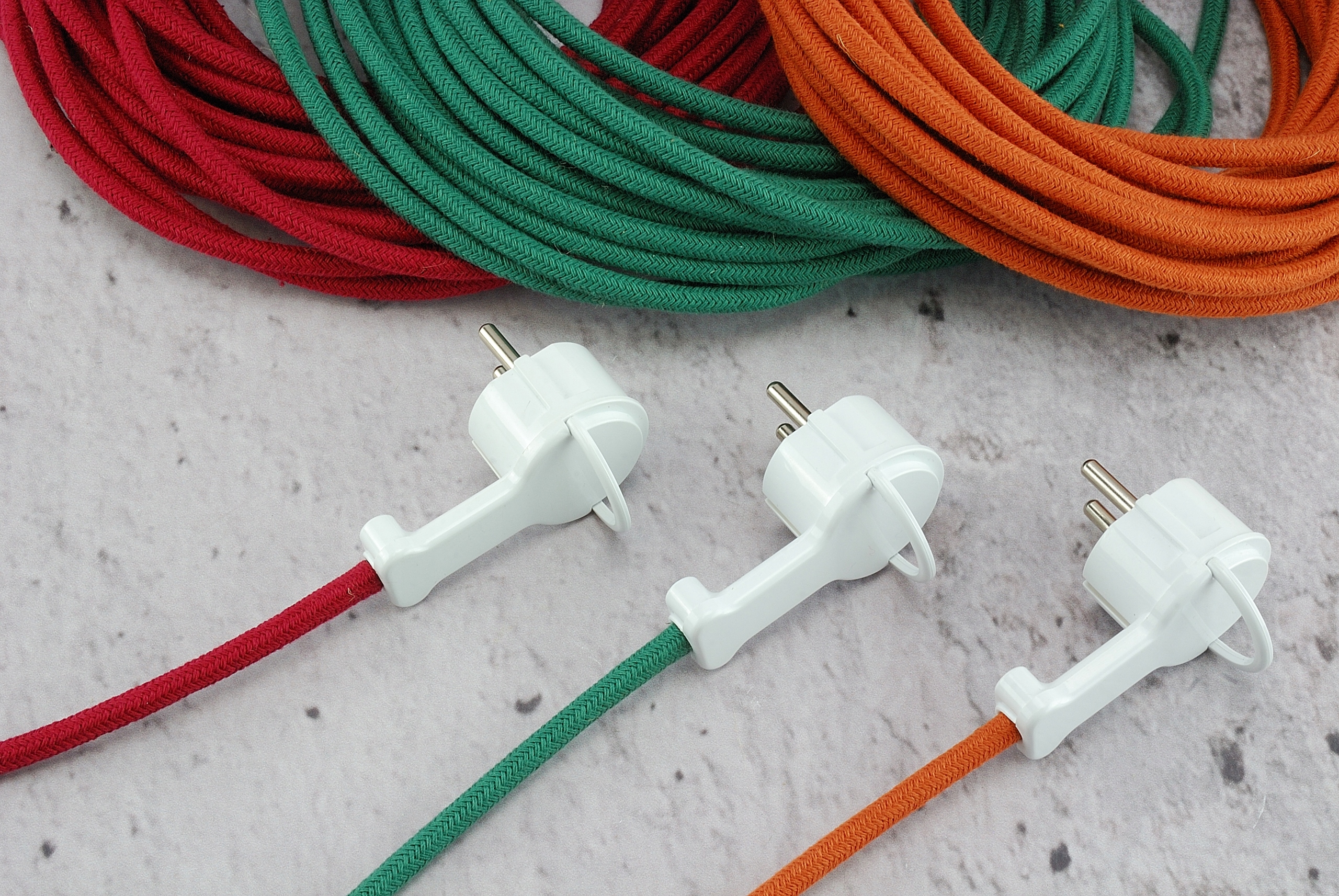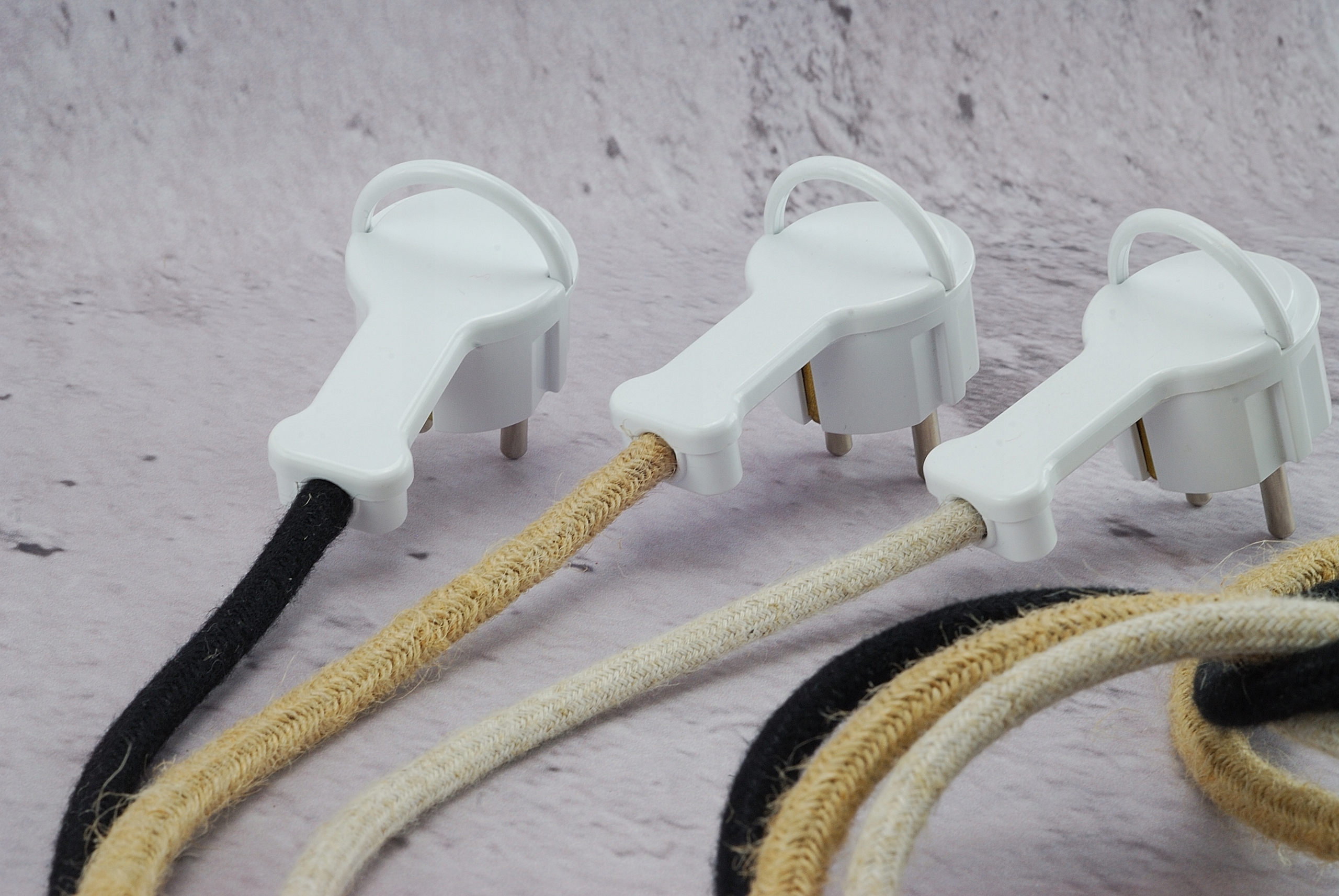 wtyczka SLIM ultra płaska nie wystaje z gniazdka LOFT przewód w oplocie DIY