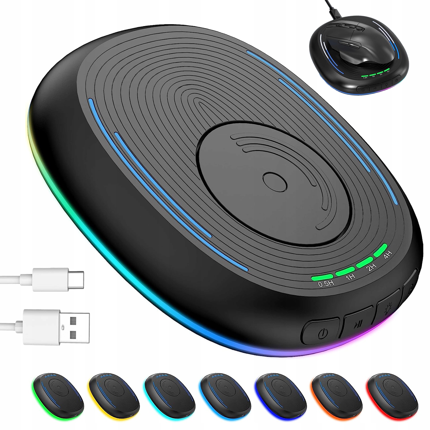 ☑️Plug and play:Мишка дуже зручна у використанні. Щоб використовувати його, просто підключіть мишу до джерела живлення, установка драйвера не потрібна. Розмістіть оптичну мишу на поворотній платформі, коли ввімкнено функцію вібрації офісної миші, і відблиск миші імітує фізичний рух, тож ваш комп’ютер завжди буде активним.