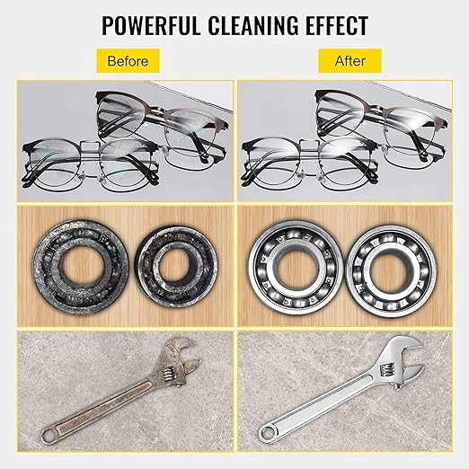 Цифрова панель керування: Ультразвуковий очищувач оснащений цифровою панеллю керування з регульованим таймером (0–30 хв) і нагріванням (RT-176℉ / RT-80℃) на світлодіоді. Функція нагрівання ефективно пом'якшує та розчиняє плями від масла та воску, покращуючи ефект очищення.