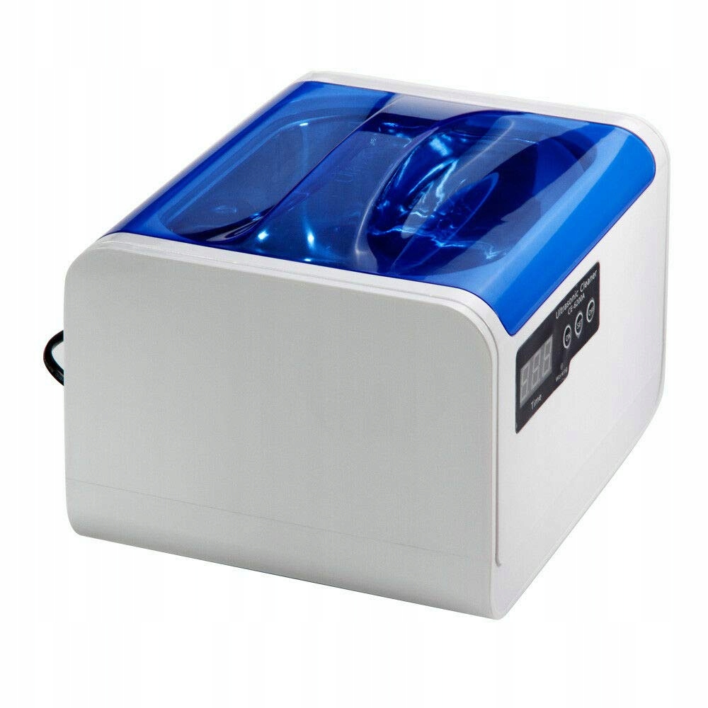 Ультразвуковий очисник – це пристрій, який використовує явище кавітації. Під час роботи він створює ультразвукову хвилю, яка змушує бульбашки кисню вибухати у воді. Це створює велику силу, яка змушує частинки бруду відриватися від вимитої поверхні. Прилад використовується для миття елементів, де доступ утруднений. Ванна пропонованої пральної машини CE-6200A виготовлена з високоякісної нержавіючої сталі SUS304. Має резервуар ємністю 1400 мл і потужністю 70 Вт. Великою перевагою є вбудований таймер, який дозволяє встановити час роботи пральної машини: 90 с, 180 с, 280 с, 380 с або 480 с. Крім того, він характеризується частотою ультразвукової хвилі 42 кГц. Пральна машина виготовлена з ABS-пластику, стійкого до вібрацій, спричинених ультразвуковими хвилями.