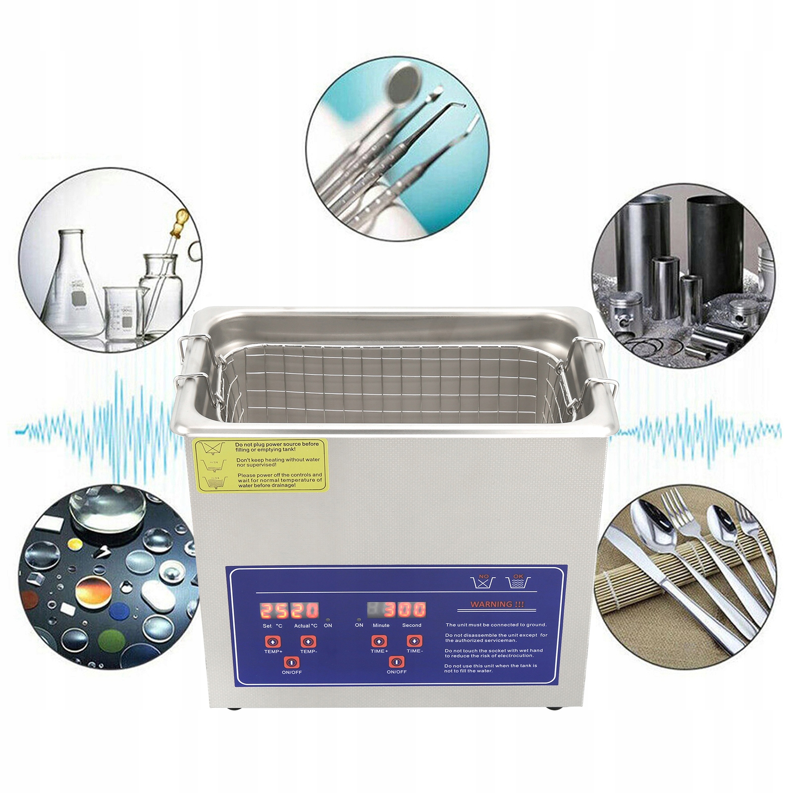 - Working method: Ultrasonic cleaning < Used in electronic devices, seater questions, printed questions, galvanic parts, optical lenses, magnetic audio gowice, polyester filters elements, chemical vircuits spinners, spinning nozzles, inklincomes for printers, latex forms, magnetic materials, surgical equipment, products, products, products glass, photographic equipment, communication equipment, fire moufles, stainless steel products, Zota and silver jewelry, clocks, glasses, sewing machines, precise mechanical parts, hydraulic parts, Пневматичні деталі, металеві інструменти, 3 -логотичні клапани, очищення, веслування, видалення іржі, декларація та зовнішня обробка, оазі, нафтові форсунки, масляні насоси, карбюратори, форсунки палива, циліндри, циліндри, блоки циліндрів та деталі, особливо до скепів та нефалійних хол. Очищення увігнутих та опуклих канавок - це найбільш ідеальне обладнання. У той же час його можна використовувати для очищення, вилучення, емульгування, депутації, зволоження та подрібнення клітин у біохімії, фізиці, хімії, наукових досліджень та університетів.