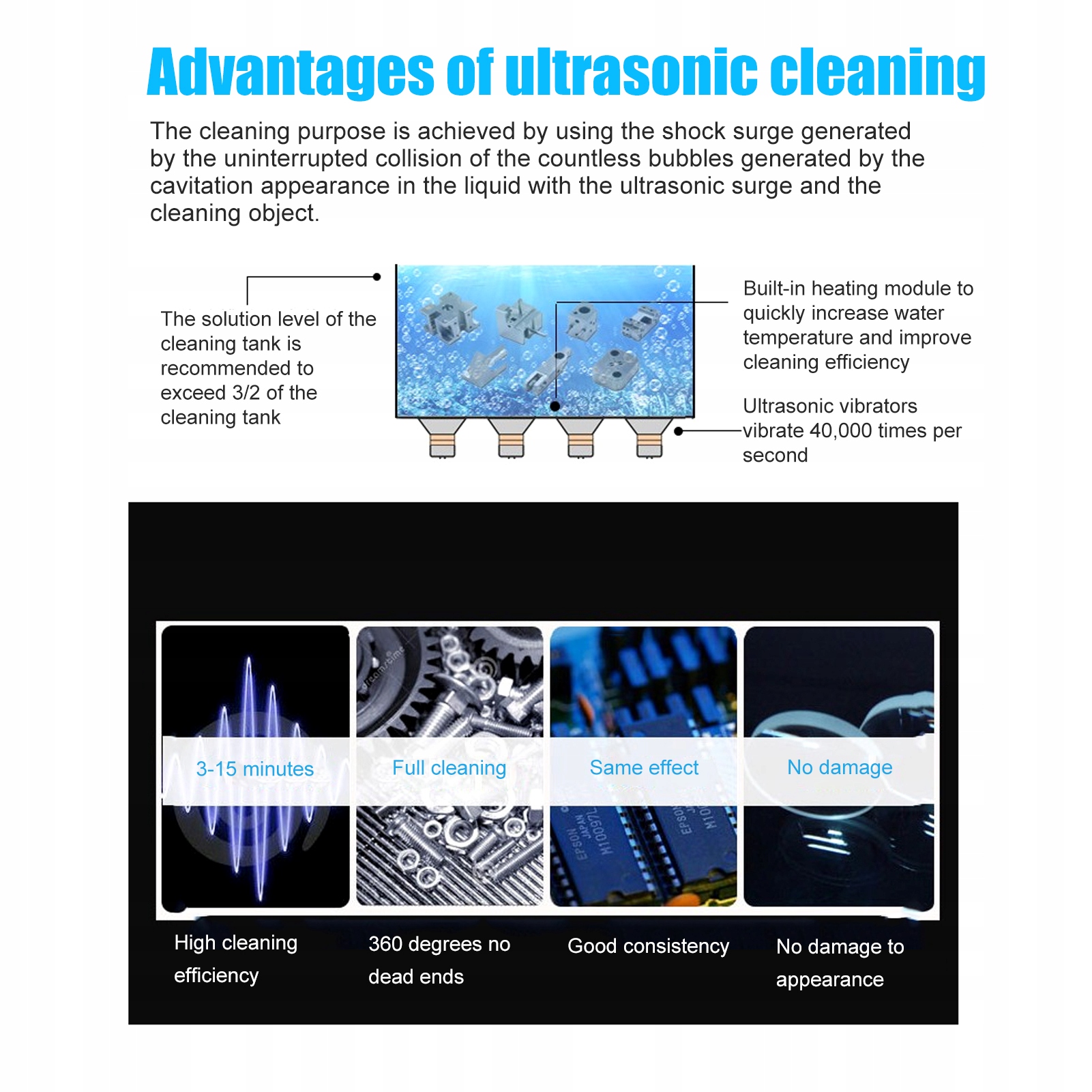 6. Технологія ультразвукових схем була всебічно вдосконалена, яка котить сліпу ультразвукову очищення та має неперевершену перевагу перед іншими методами фізичного очищення або хімічного очищення.