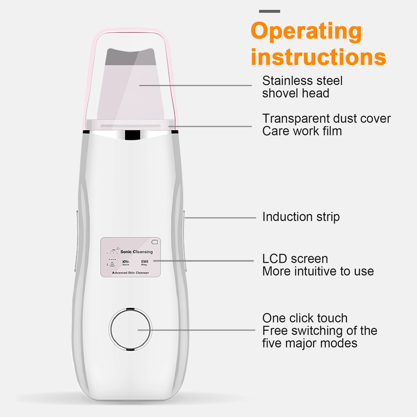 1. Ультразвукова ексфорація: Цей пристрій використовує ультразвукові вібрації для глибокого очищення шкіри, видалення мертвих клітин шкіри та домішок, одночасно покращуючи текстуру шкіри.