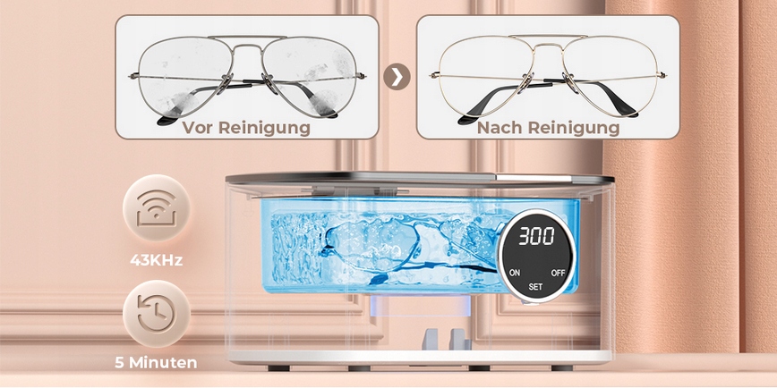 Ультразвукова шайба має 5 циклів очищення: 180/300/480/600/90s.