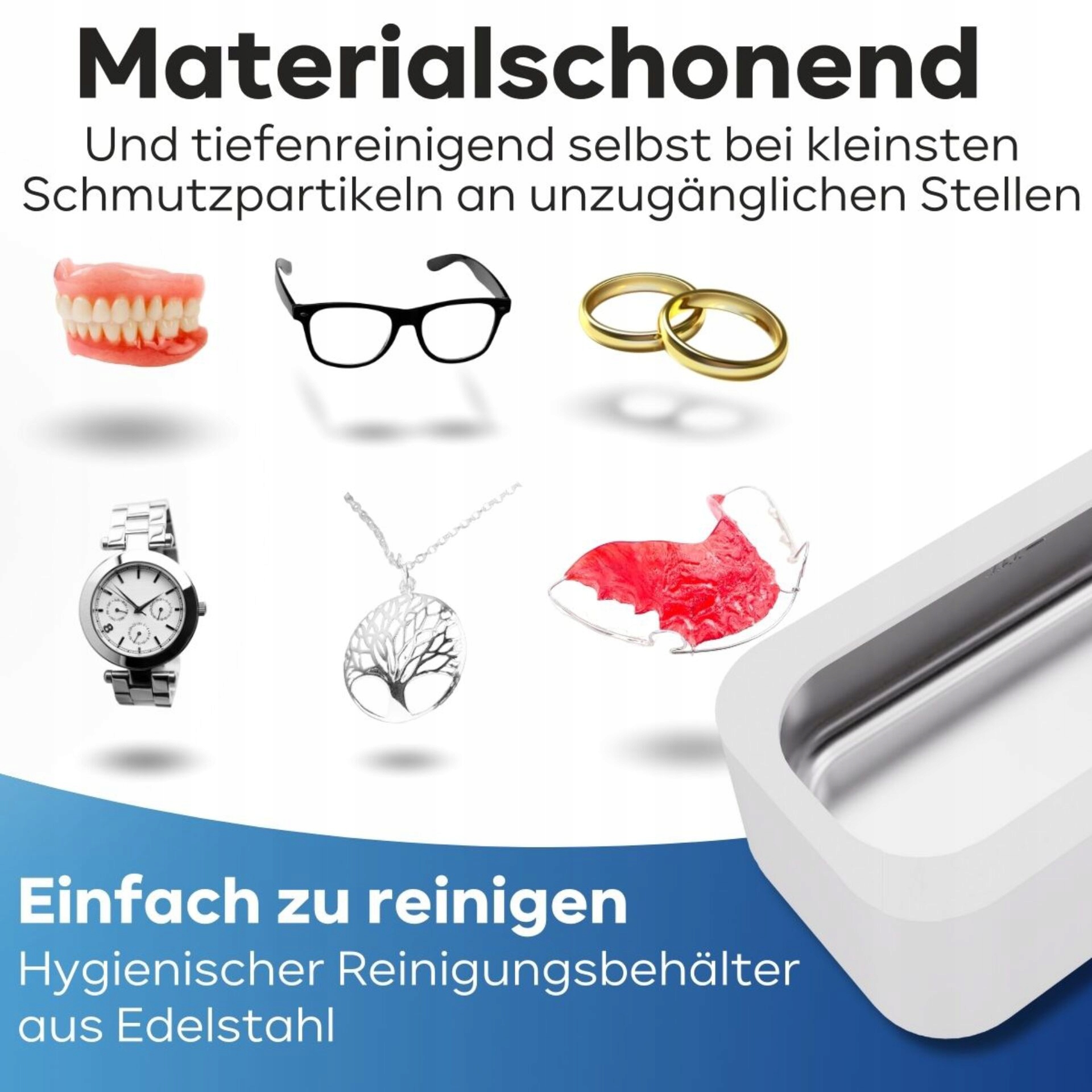 - Містка чаша для чищення ювелірних виробів, окулярів, годинників і зубних протезів.