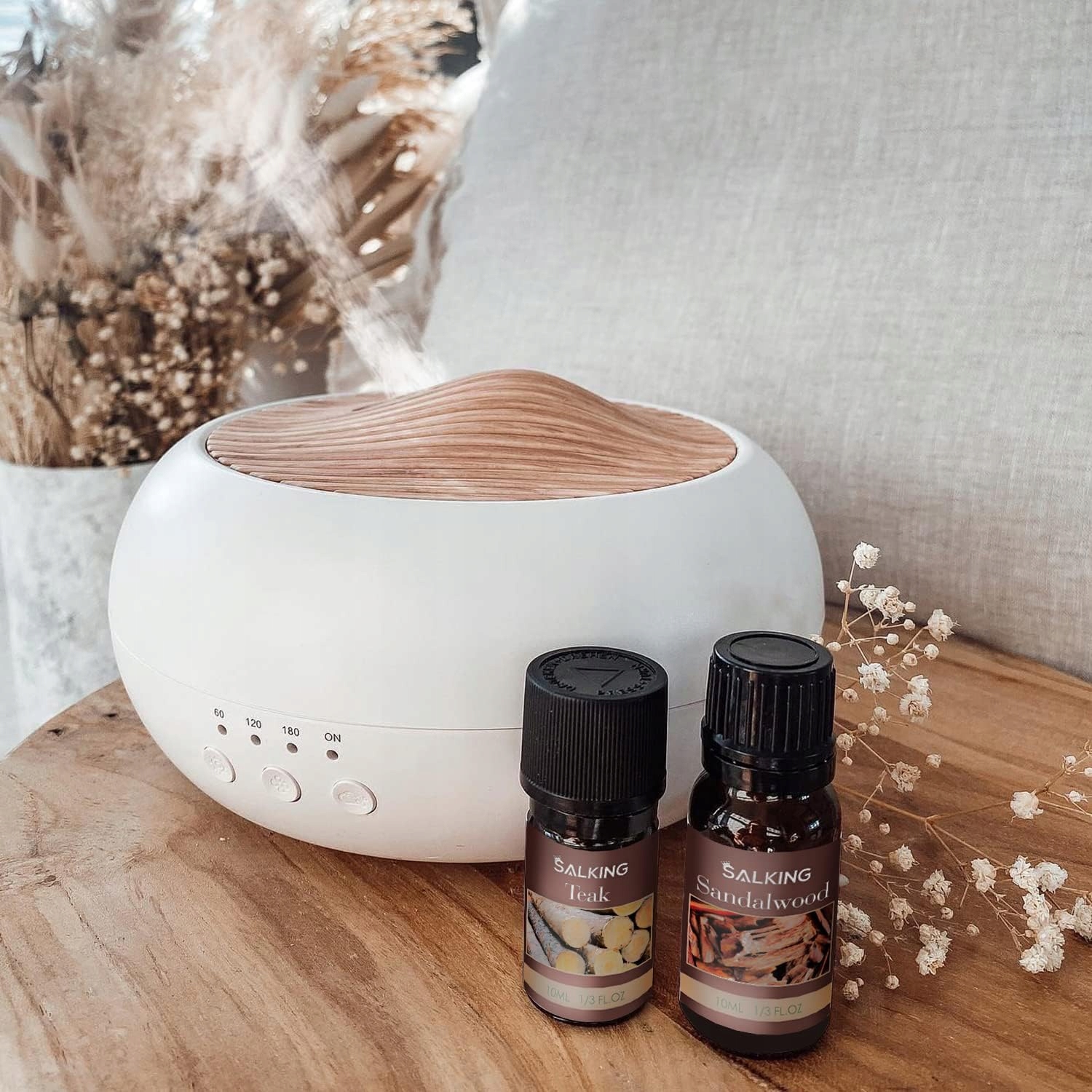 【Режим таймера та вимикання, коли пусто】: цей ароматичний дифузор ефірних олій має 3 режими налаштування часу: 60 м, 120 м , 180 м, ON; при ємності 250 мл зволожувальний масляний дифузор може працювати до 5-7 годин; Масляний дифузор автоматично вимикається, коли немає води.