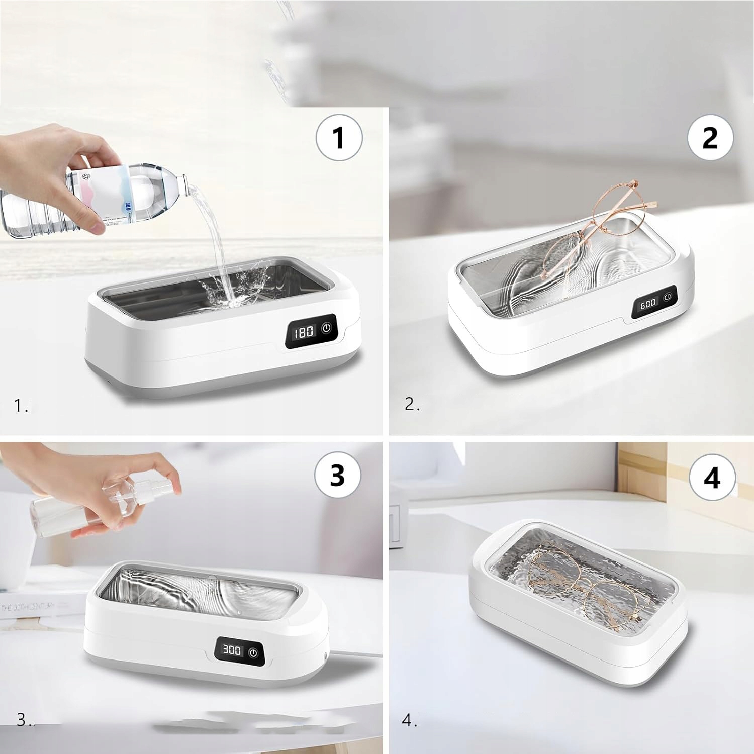 ❇️СЦЕНАРІЇ ШИРОКОГО ЗАСТОСУВАННЯ:Цей продукт підходить для чищення всіх видів повсякденних речей, включаючи, але не обмежуючись: окуляри, металеві прикраси, водонепроникні годинники, зубні протези, бритвені головки, пензлики для макіяжу тощо. Він особливо підходить для чищення невеликих предметів зі складною структурою, які важко чистити вручну.