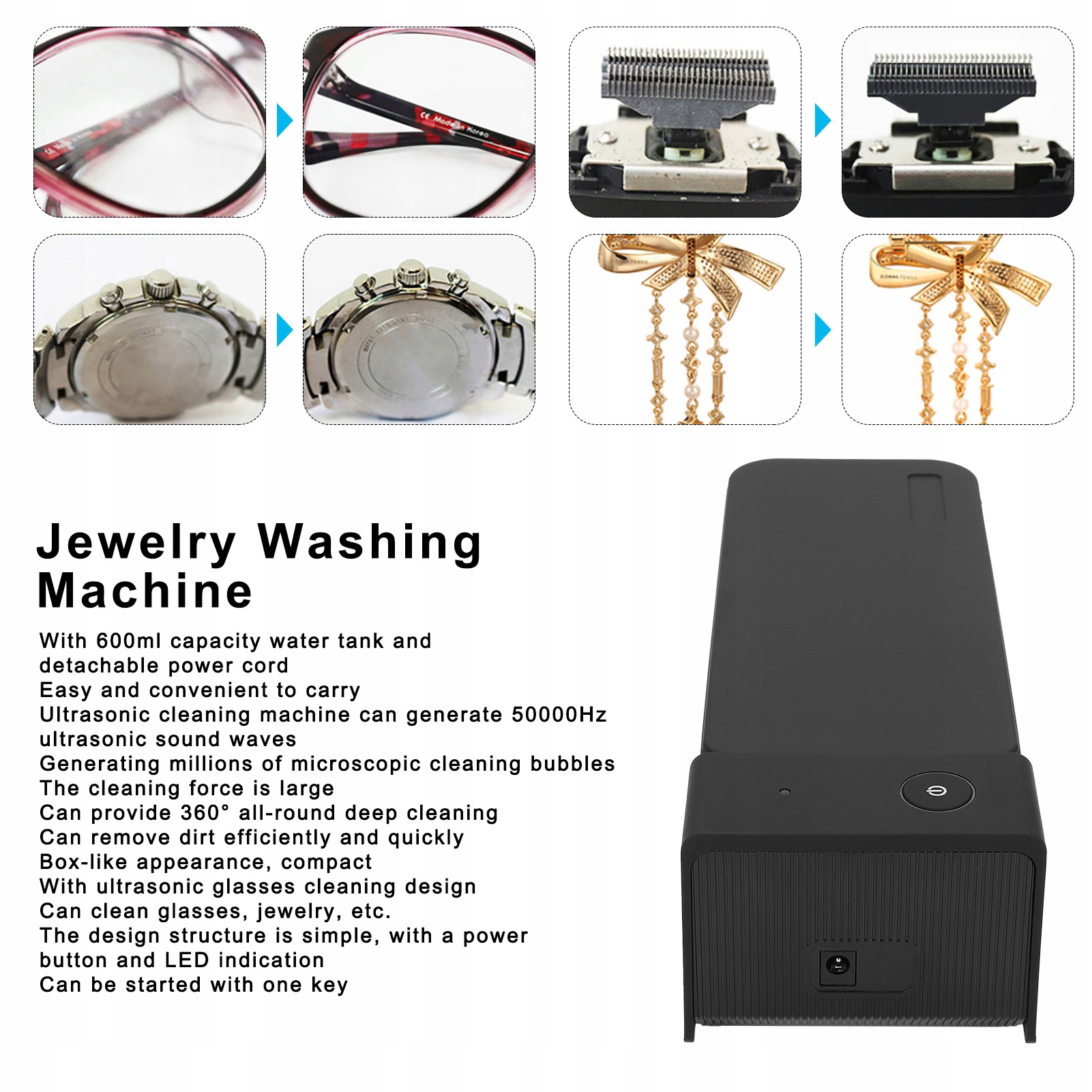 4. Зовнішній вигляд коробки, компактний, з ультразвуковим очищенням окулярів, може чистити окуляри, прикраси тощо.