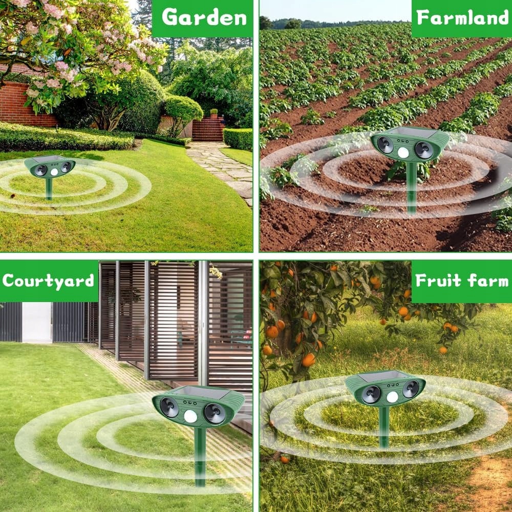 ➕ kun релер для саду. запускається під кутом 110 ° та діапазоном 0-8 м, щоб забезпечити оптимальну продуктивність для захисту від оленів, птахів, кроликів, заклинань, молетів, мармотів, навісів, білок, бродячих собак та котів.