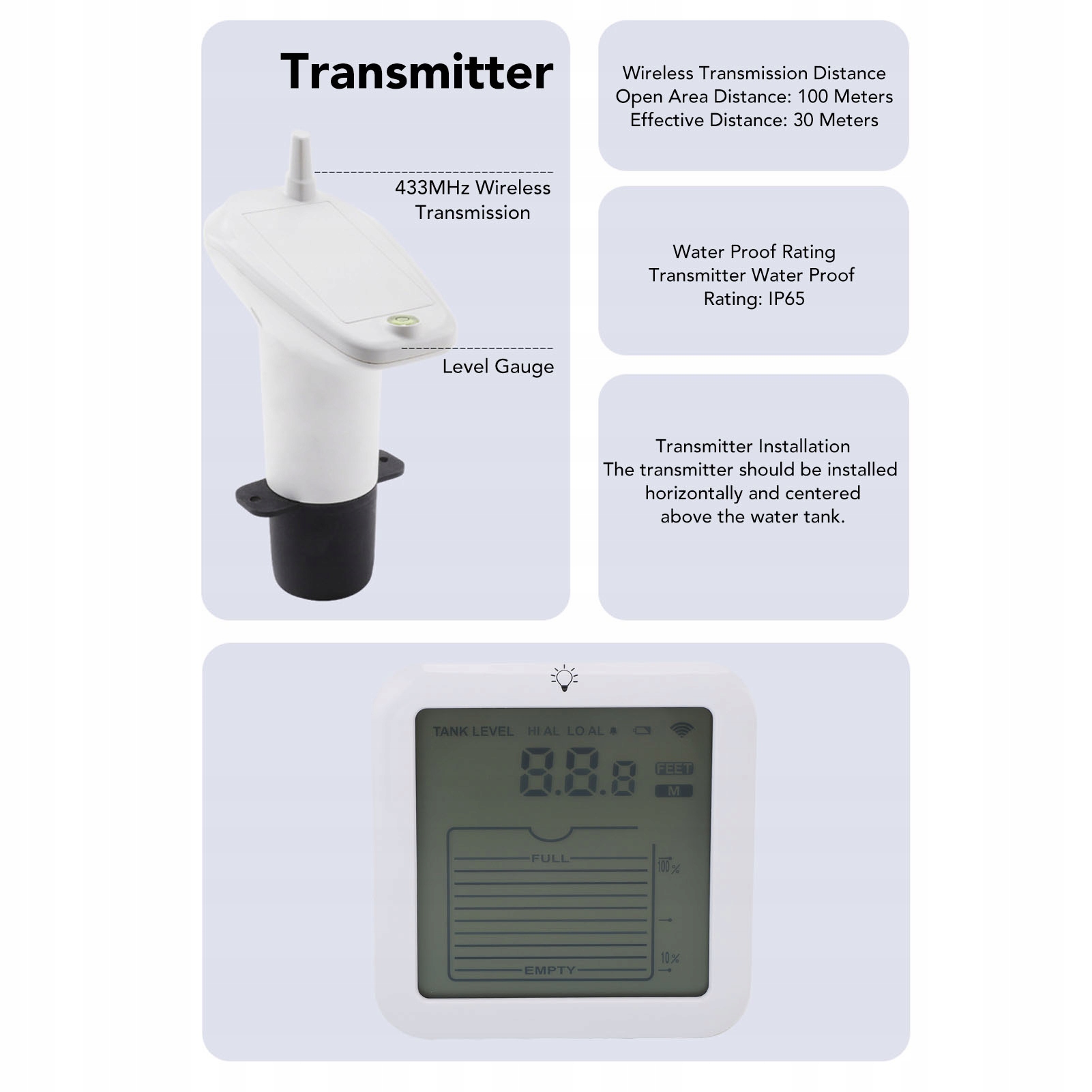 2. 100 м бездротовий зовнішній діапазон: акумулятор і без кабелю, цей рівень рідини водойми дозволяє легко впровадити в районах, одночасно усуваючи необхідність проводки, проводів або електричних робіт.