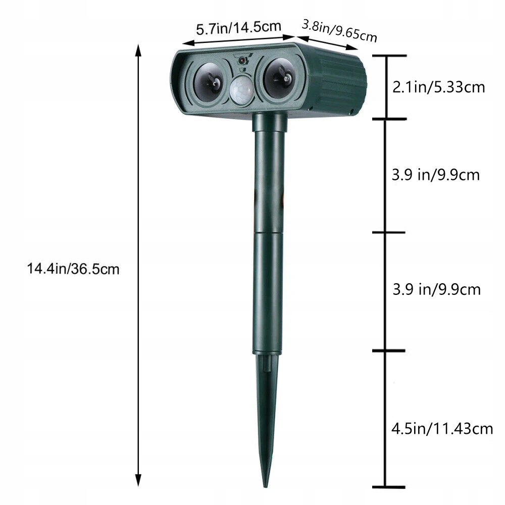- безпечний та гуманітарний спосіб утримувати котів та інших небажаних шкідників (собак, лисиць, білок, гризунів, деяких комах) подалі від саду завдяки повністю регульованій чутливості та частоті. Помилкова активація, що продовжує термін експлуатації акумулятора) на відстані до 7 м, активуючи котячий репелент, який випромінює звук високої частоти, дратуючи кота і майже не чути для людей.
