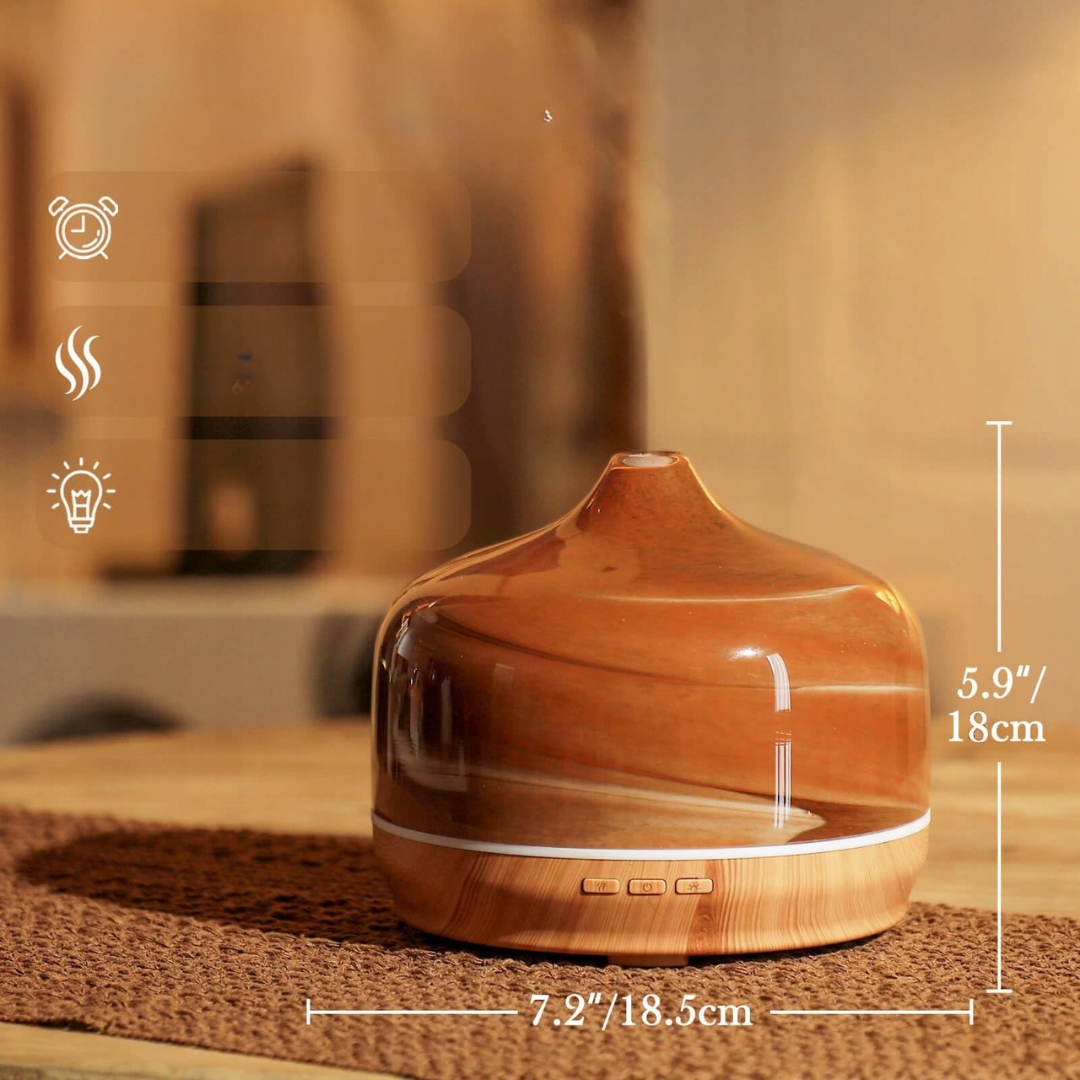 Скляний масляний дифузор Porseme 500 мл, зволожувач повітря для ультразвукової ароматерапії, світлодіодне освітлення 7 кольорів на вибір або режим зміни кольору, масляний дифузор з таймером, без бісфенолу А.