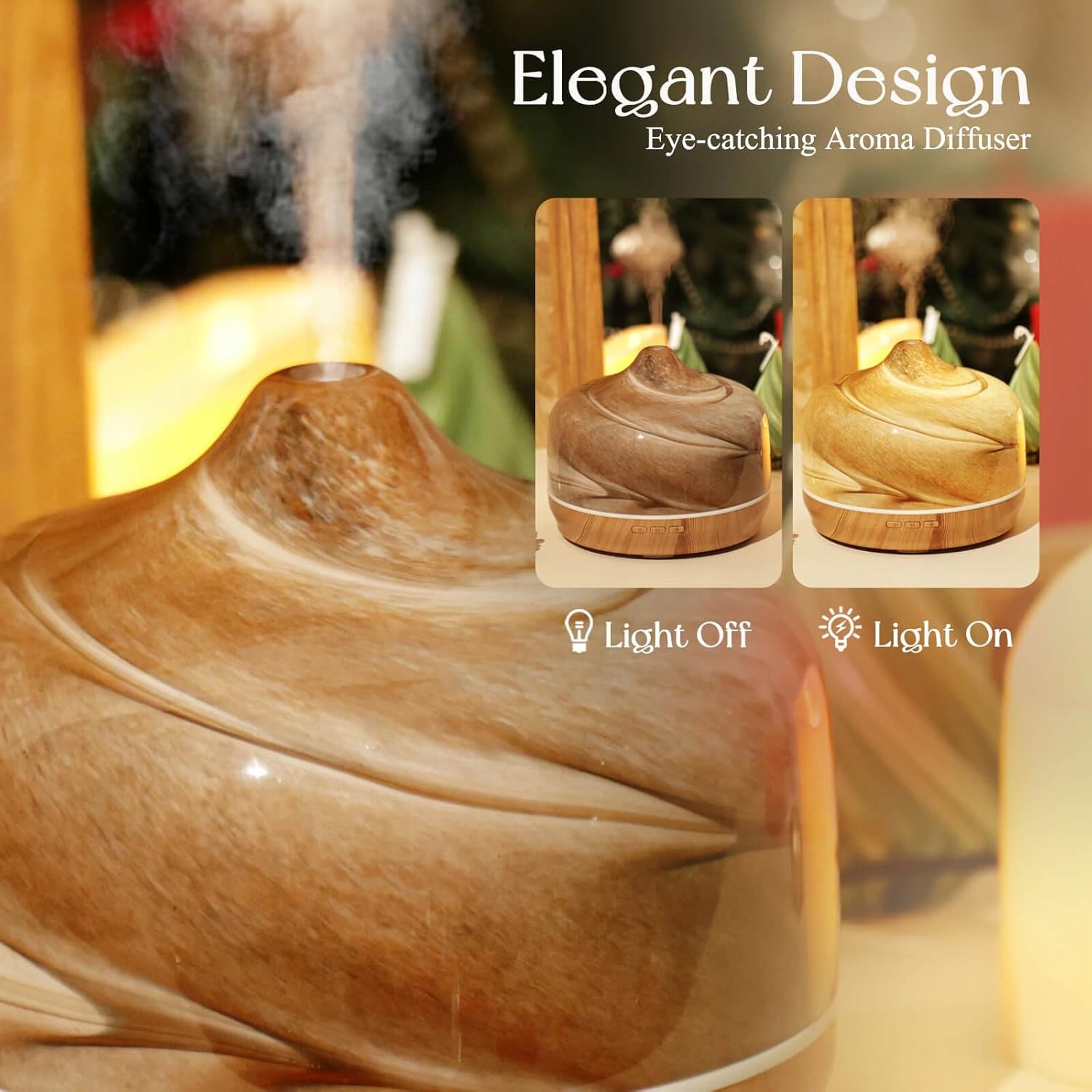 【Багатофункціональний і практичний】Цей ароматерапевтичний масляний дифузор може не лише створити заспокійливу романтичну атмосферу, але й очищати повітря. Додайте 4-6 крапель ефірної олії та води в ємність, щоб насолодитися прекрасним ароматом. Якщо ви хочете, щоб у вашому домі пахло красиво або хочете створити потрібну атмосферу, відрегулюйте аромат олії та насолоджуйтесь святковими пряними та апельсиновими нотами. Використовуйте елегантні ноти аромату для щоденного використання, а при проблемах з дихальними шляхами можна використовувати освіжаючу м'яту або евкаліпт. Використовуйте, як вам подобається.