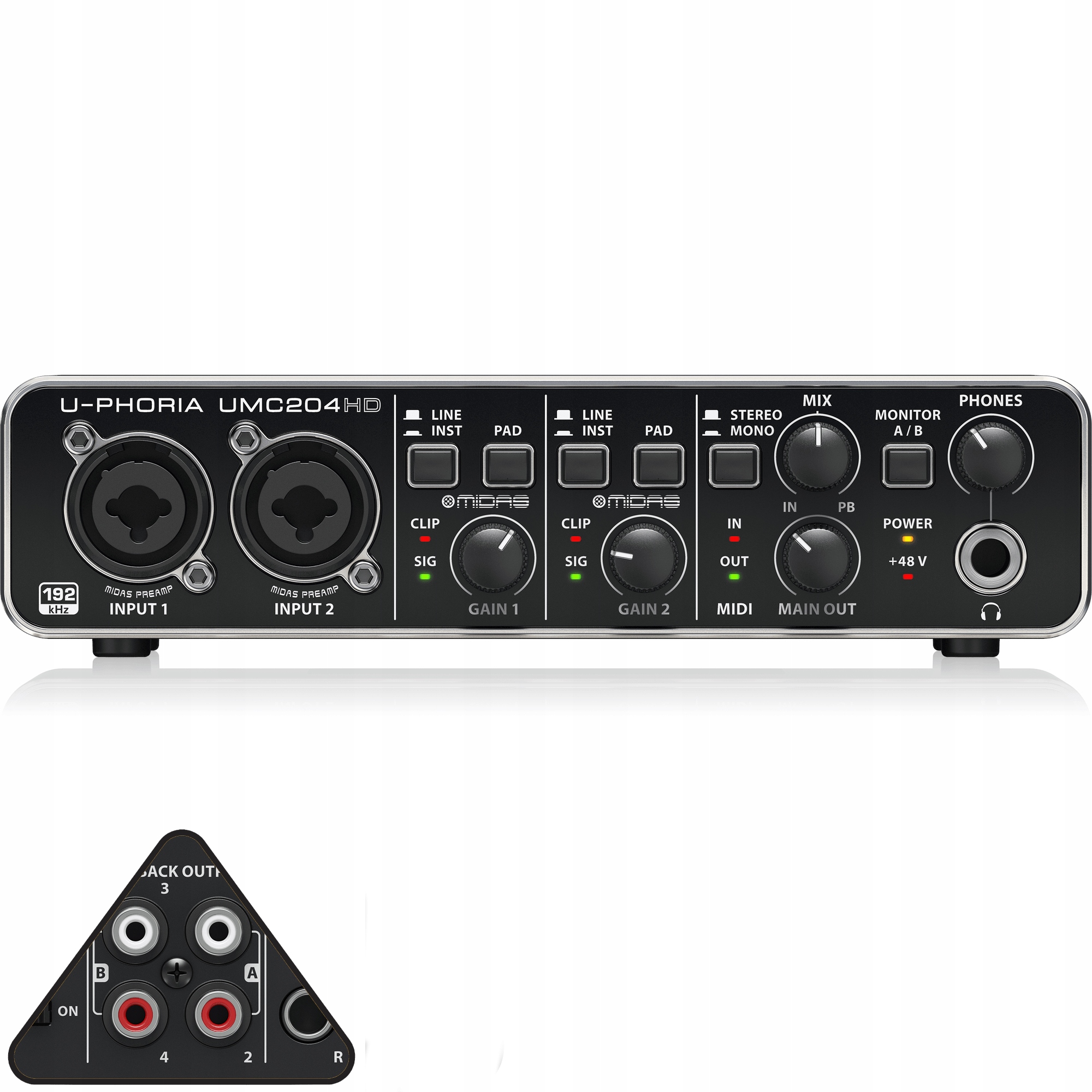 Behringer U-PHORIA UMC204HD – аудіоінтерфейс 2×4 USB 2.0, призначений для запису інструментів і використання мікрофонів у якості HD.