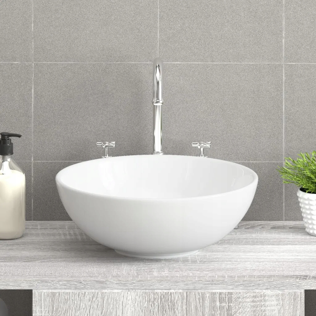 - Керамічний матеріал: умивальник на стільницю виготовлений виготовлений з кераміки і стійкий до подряпин і корозії, забезпечуючи тривалий термін служби.