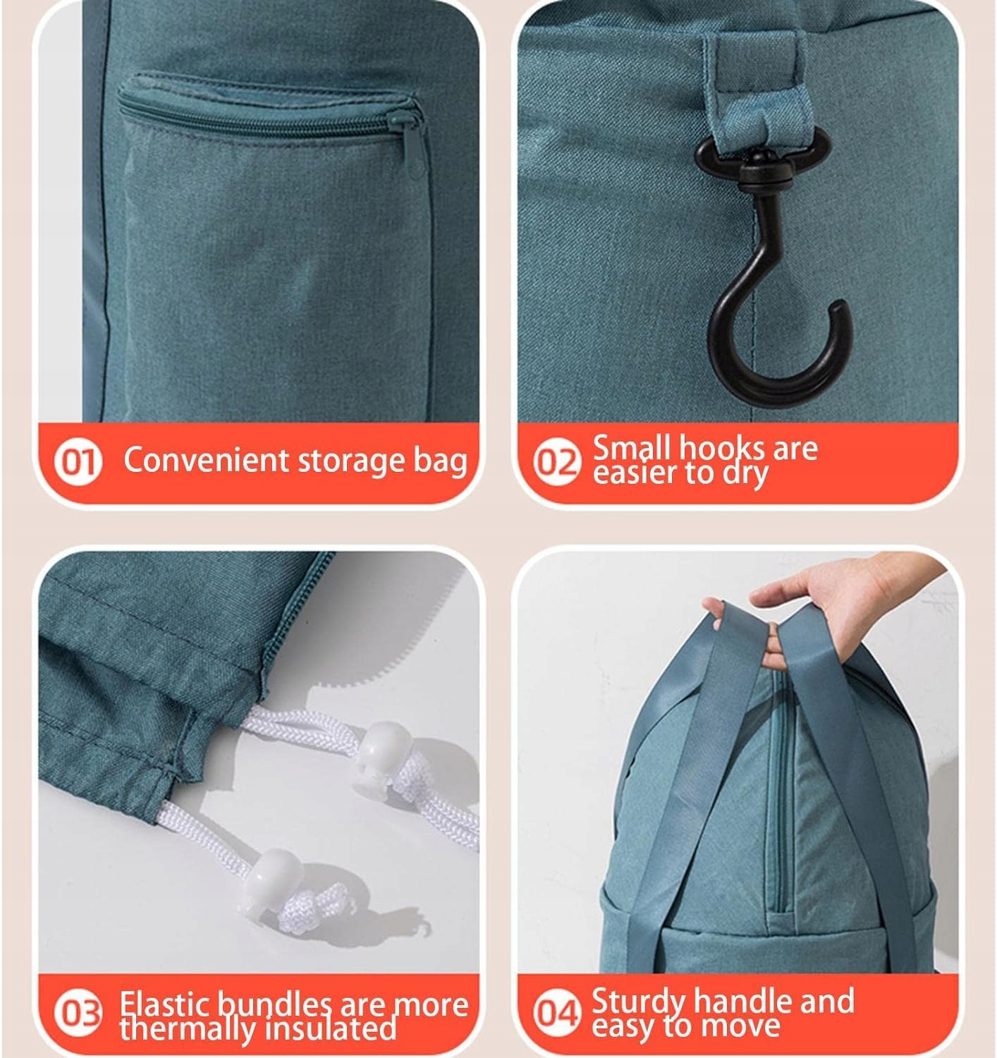Складна та портативна. Складна ванна для ніг складається та має сумку для зберігання, яка не лише зручна для зберігання, але й економить місце. У той же час він легкий і дуже зручний. Широке застосування. Складана підставка для ніг підходить для сімейних походів на свіжому повітрі тощо. Вона підходить не лише для замочування ніг, але також може використовуватися для прання одягу, овочів, фруктів тощо. Ідеальний подарунок. Складана підставка для ніг є багатофункціональною та дозволяє вам насолоджуйтеся теплою ванною для ніг. Це ідеальний подарунок для тата, матері, улюблених дітей, друзів або колег. Тепла ванна для ніг Раковина для ніг оснащена піднятими наколінниками, які можуть повністю оточувати литку та зберігати тепло протягом тривалого часу, тому ви можете легко насолоджуватися теплою ванною для ніг. Високоякісний матеріал Foot Soaking Bucket виготовлений з високоякісного поліестеру, потовщеної термоалюмінієвої фольги та матеріалу ПВХ, який характеризується високою термостійкістю, довговічністю та надійністю.