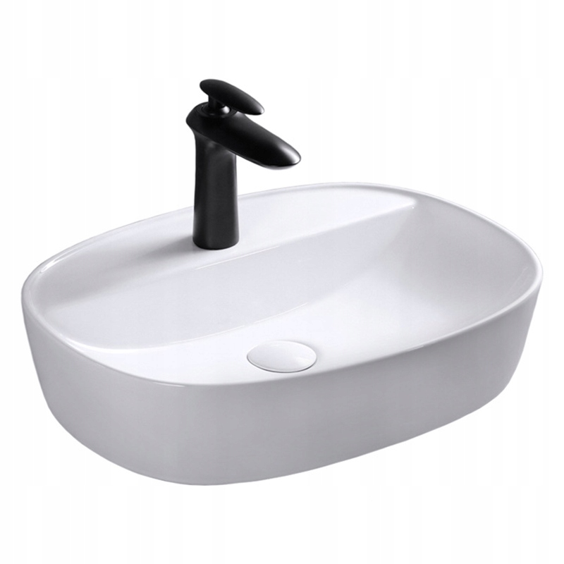 УМИВАЛЬНИК КЕРАМІЧНИЙ НАСТІЛЬНИЙ, ГЛЯНЦЬ, ОВАЛЬНИЙ, БІЛИЙ, ВСТАНОВЛЕНИЙ НА СТІЛЬНИЦЮ 60х40 СМ