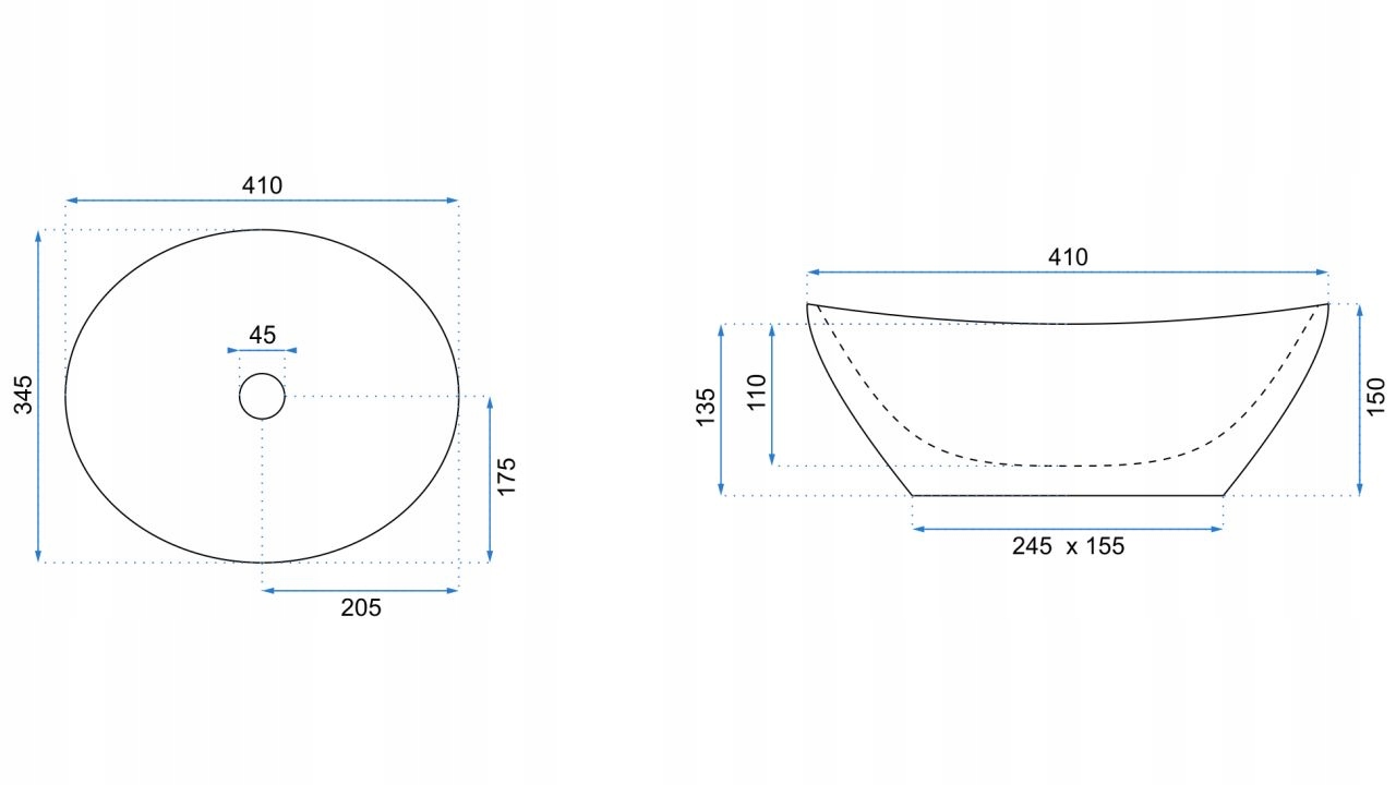- Зливний отвір: стандартний 4,5 см