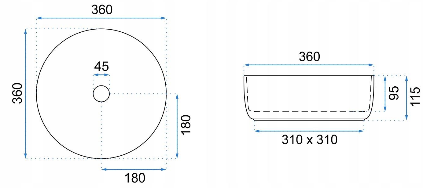 - Дренажний отвір: Стандартний 4,5 см