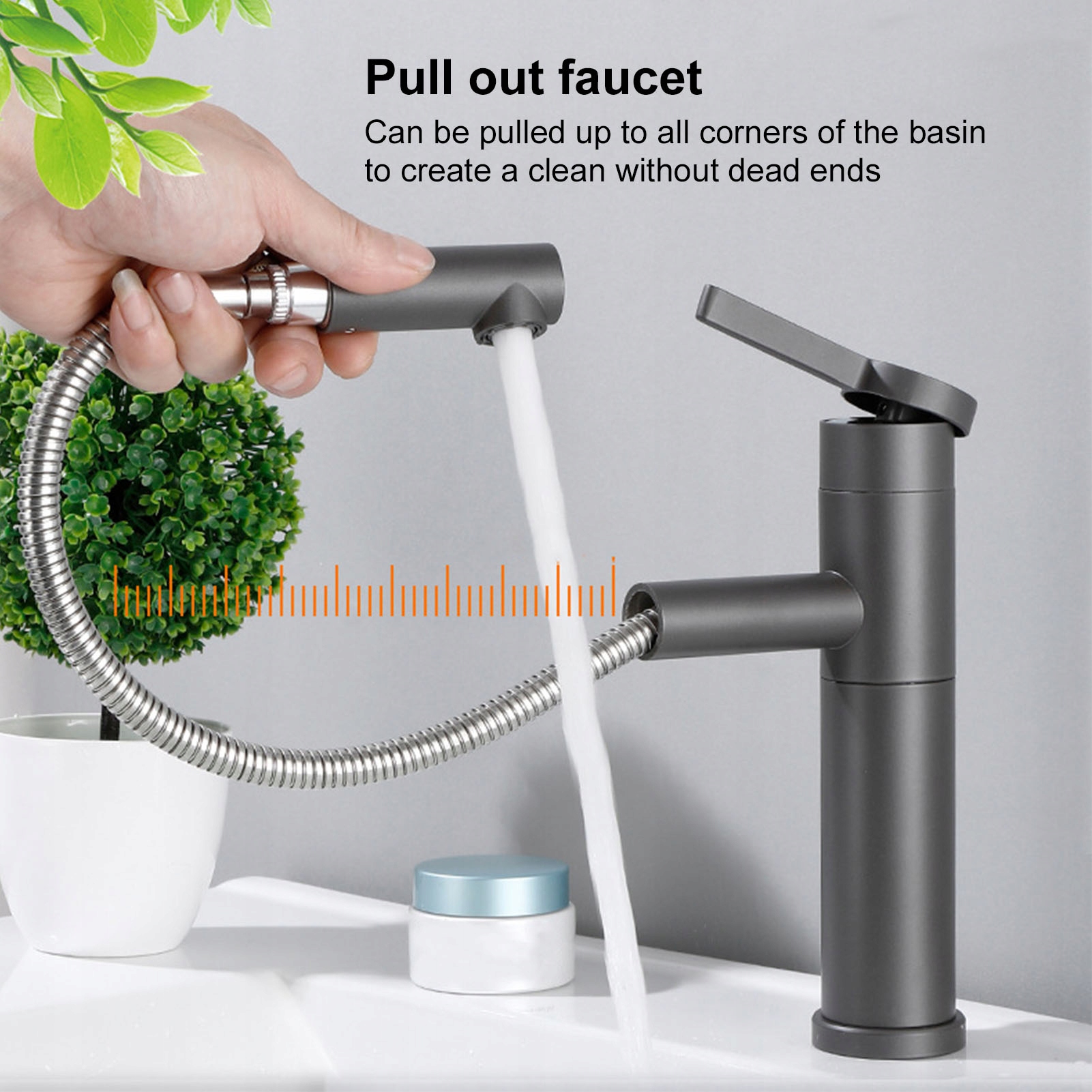 1. ВИСУЙНИЙ КРАН: змішувач має висувну конструкцію, яку можна витягнути в усі кути раковини, щоб забезпечити повний діапазон очищення відповідно до ваших різноманітних потреб у очищенні.