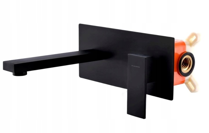 Змішувач для умивальника настінний, призначений для прихованого монтажу за допомогою EBOX. Виріб виготовлено з латуні та багаторазово покрито чорним покриттям з матовим покриттям. Завдяки використаній технології змішувач надійний і стійкий до іржі.