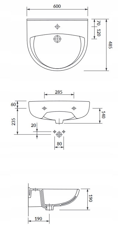 - Настінний керамічний умивальник