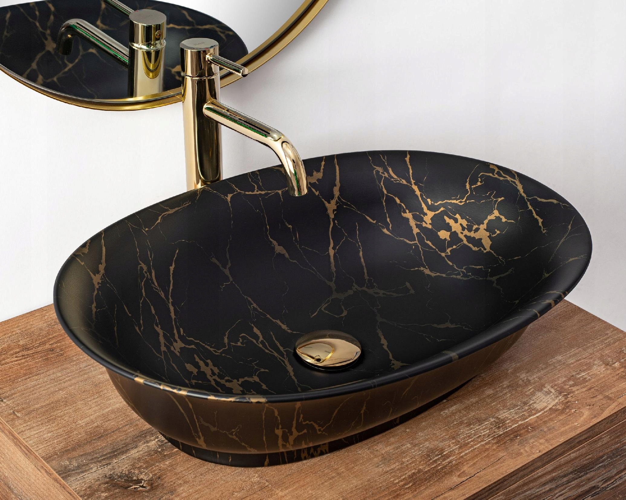 Керамічний умивальник ROMA Marble — вибір для найвибагливіших клієнтів. Цей сучасний надзвичайно елегантний настільний умивальник чорного кольору оздоблений унікальним візерунком, що нагадує вигляд натурального мармуру.