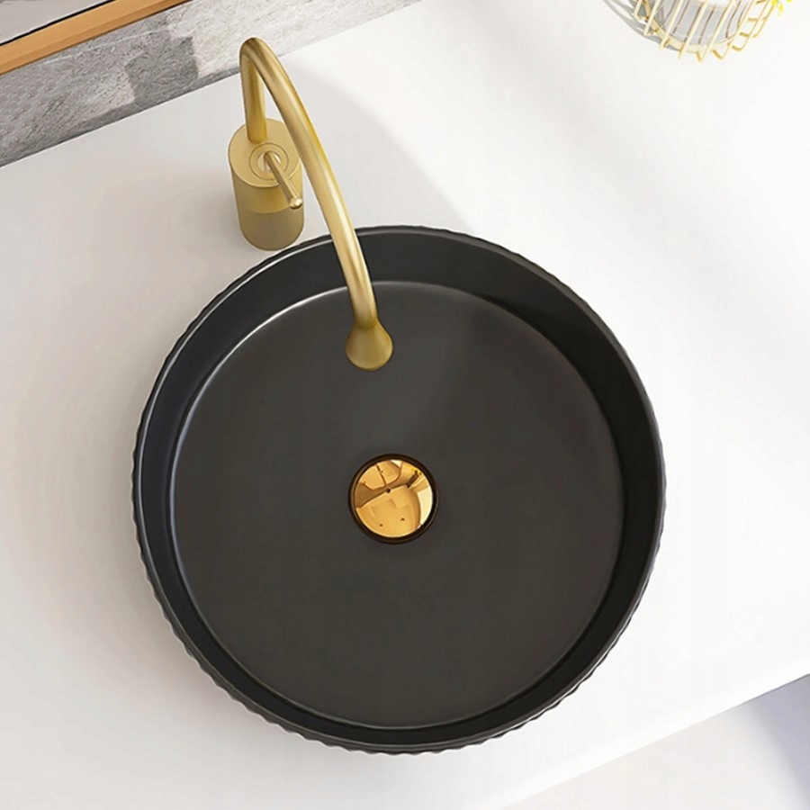 Умивальник на стільницю, який ідеально підходить для сучасних ванних кімнат. Виготовлена з високоякісної сантехнічної кераміки чорного кольору. Його непідвладний часу дизайн ідеально вписується в сучасний дизайн, а делікатне і регулярне рифлене покриття додатково внесе гармонію в інтер’єр.