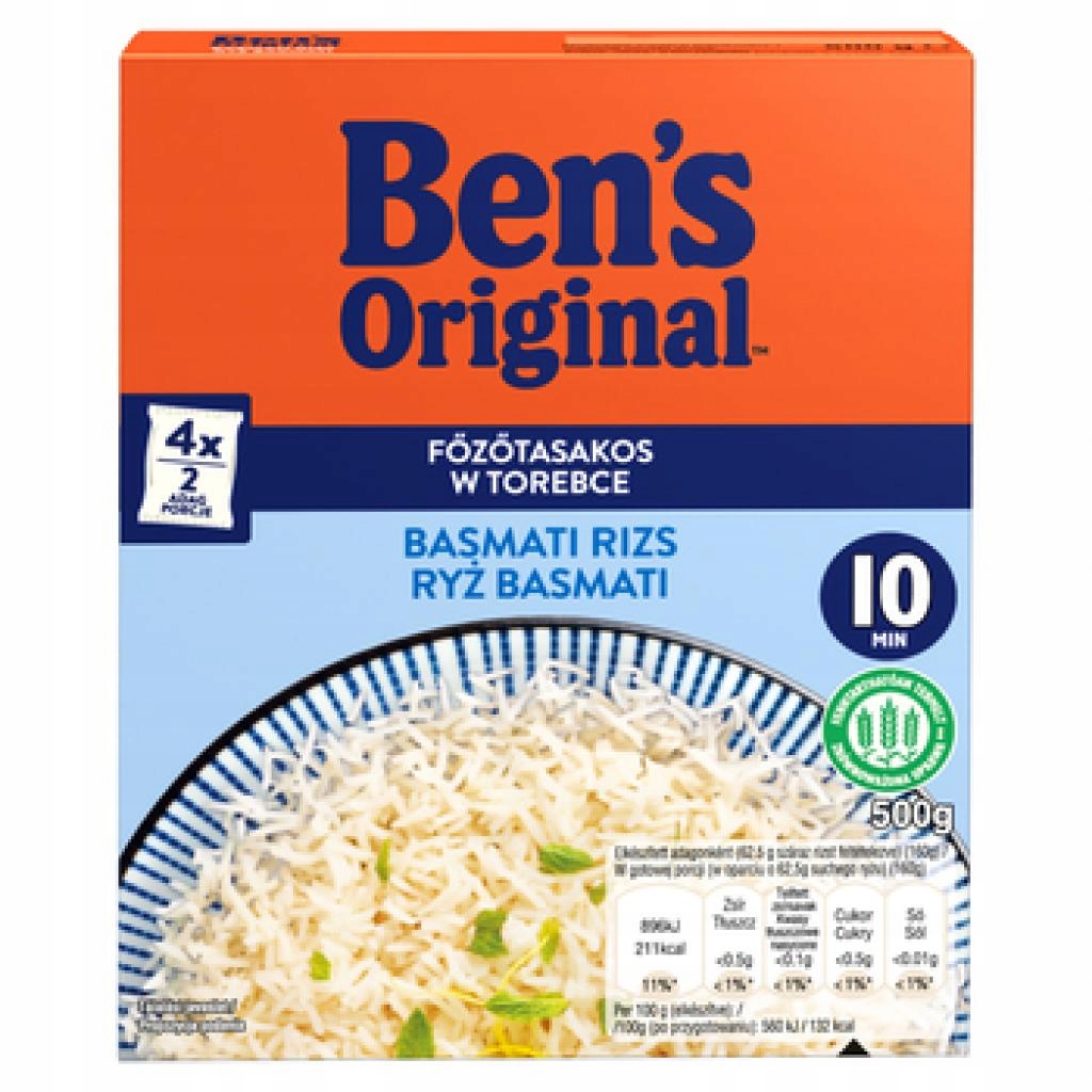 Ben's Original Basmati Rice - це рідкісний сорт довгозернистого рису, який за його благородне походження та дуже характерний горіховий аромат експерти називають королем рису. Своїм неповторним смаком і запахом він зобов’язаний благородному походженню. Рис басматі вирощують лише в Індії та Пакистані, біля підніжжя Гімалаїв. Має білосніжні, ніжні, довгі та стрункі зерна, які під час варіння стають ще довшими. Це незамінна добавка, яку високо оцінюють цінителі індійської та азіатської кухні. Він також ідеально підходить для десертів.