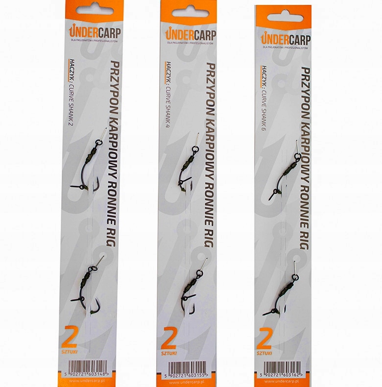 Undercarp RonnieRig — це дуже часто використовуване обладнання для мулистого дна з висувними кулями. До кільця, розташованого на лідері, ми можемо прикріпити м'яку тасьму або жорсткий матеріал, наприклад, флюорокарбон. Оснащення Ronnie rig також чудово підходить для лову білого амура. У муловому лідері використовується вертлюг з кільцем, завдяки чому плаваюча кулька на гвинті виглядає ще більш природно на дні місця лову.