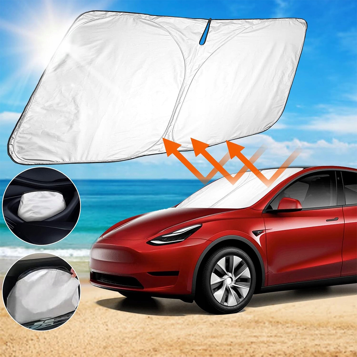✅ 【високоякісна зовнішність】 інноваційний сонцезахисний крем на передньому склі з двома стовпами -це продукти найвищої якості, виготовлені з матеріалу високої тенденції, що відображають УФ -промені, посилені міцним, міцним дротом та оснащені технологією відновлення тепла, що блокує 99% шкідливих УФ та теплових променів.