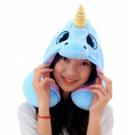 Наша дорожня подушка має милий мотив ЄДИНОРОГА з капюшоном, що значно підвищує комфорт її використання ;)