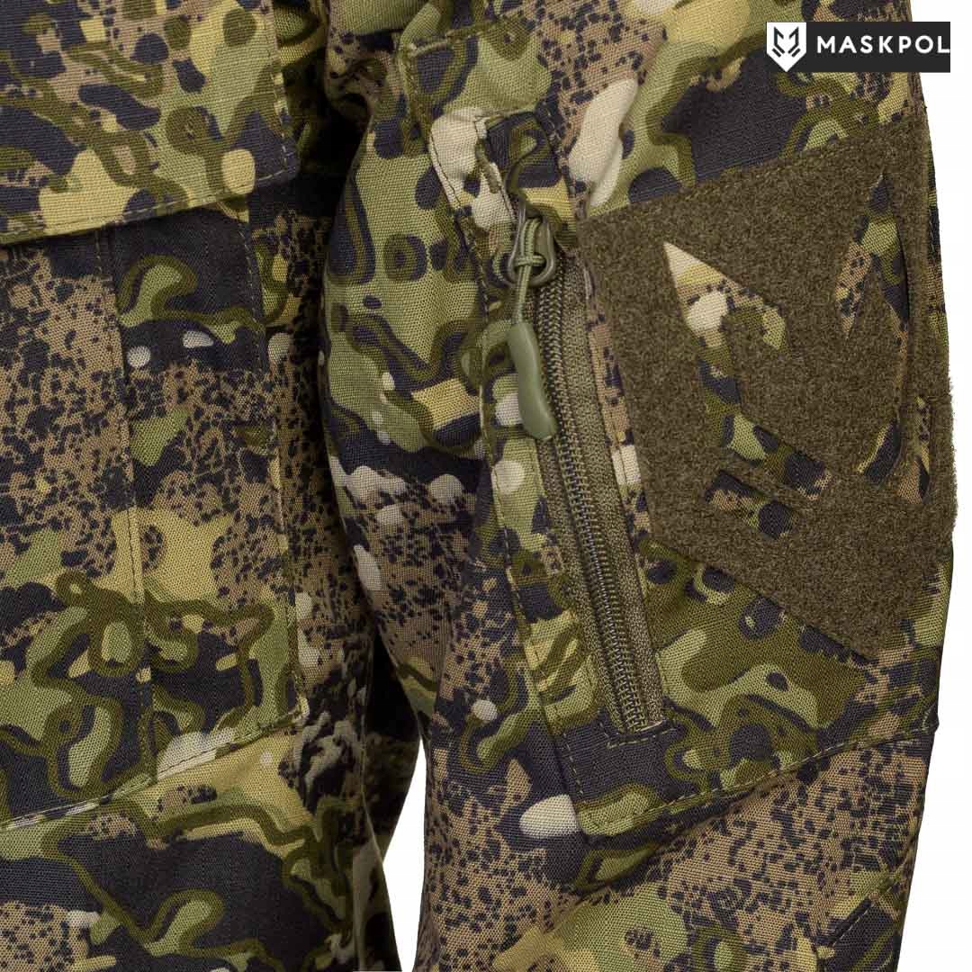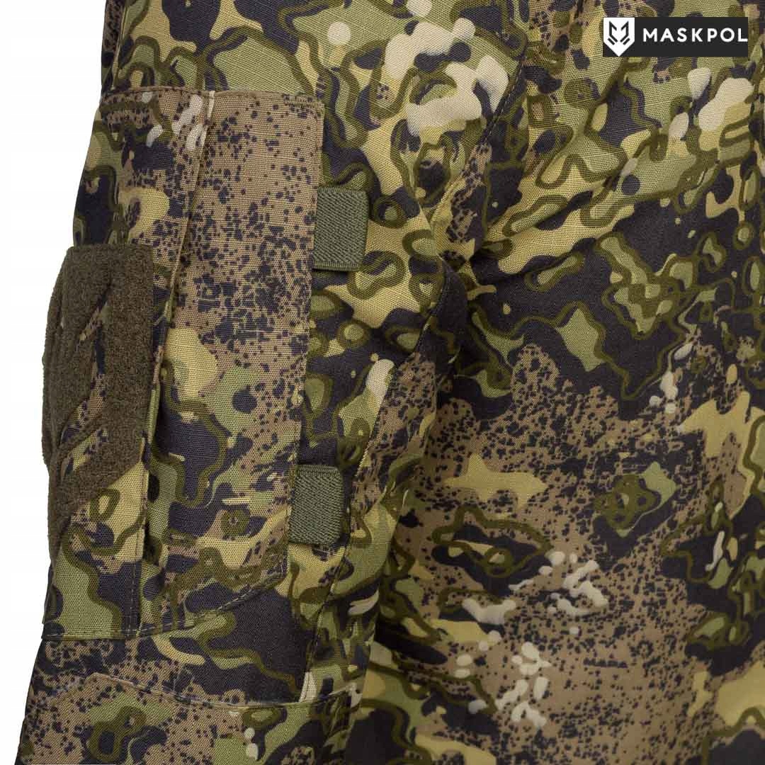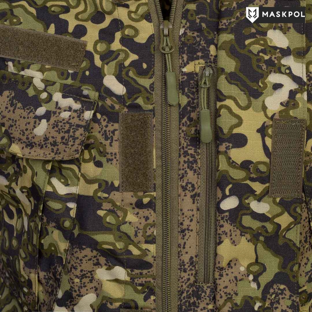 Система з п'яти практичних кишень дозволяє завжди носити важливі речі під рукою. На плечах є великі кишені з міхами, які збільшують їх місткість і оптично зменшують, коли вони не набиті. Кишені закриваються на довгі блискавки, оснащені елементами, що полегшують роботу кавоварки. Дві широкі гумові еластичні петлі для кріплення хімічної лампочки або ручки. На кишенях є великі панелі з м’якої липучки для кріплення нарукавних знаків або прапорів. Липучки з вирізаним логотипом Maskpol. Дві просторі нагрудні кишені, пришиті по діагоналі для зручного доступу. Нагрудні кишені закриваються клапаном на липучці і мають три складки, що розширюються. Прихована кишеня на блискавці, розташована на рівні грудей, з входом під клапаном, що захищає основну блискавку. У приховану кишеню легко поміститься великий смартфон, гаманець або документи.