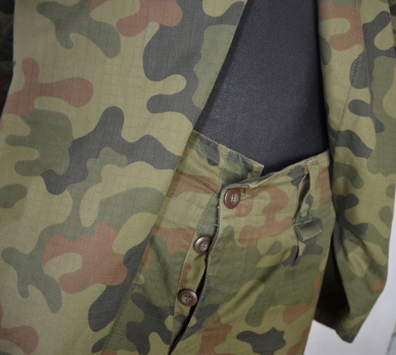 Виготовлений із тканини US-22/1 (50% бавовна, 50% поліестер у ріп-стоп переплетенні; грамматура 255 г/м²).