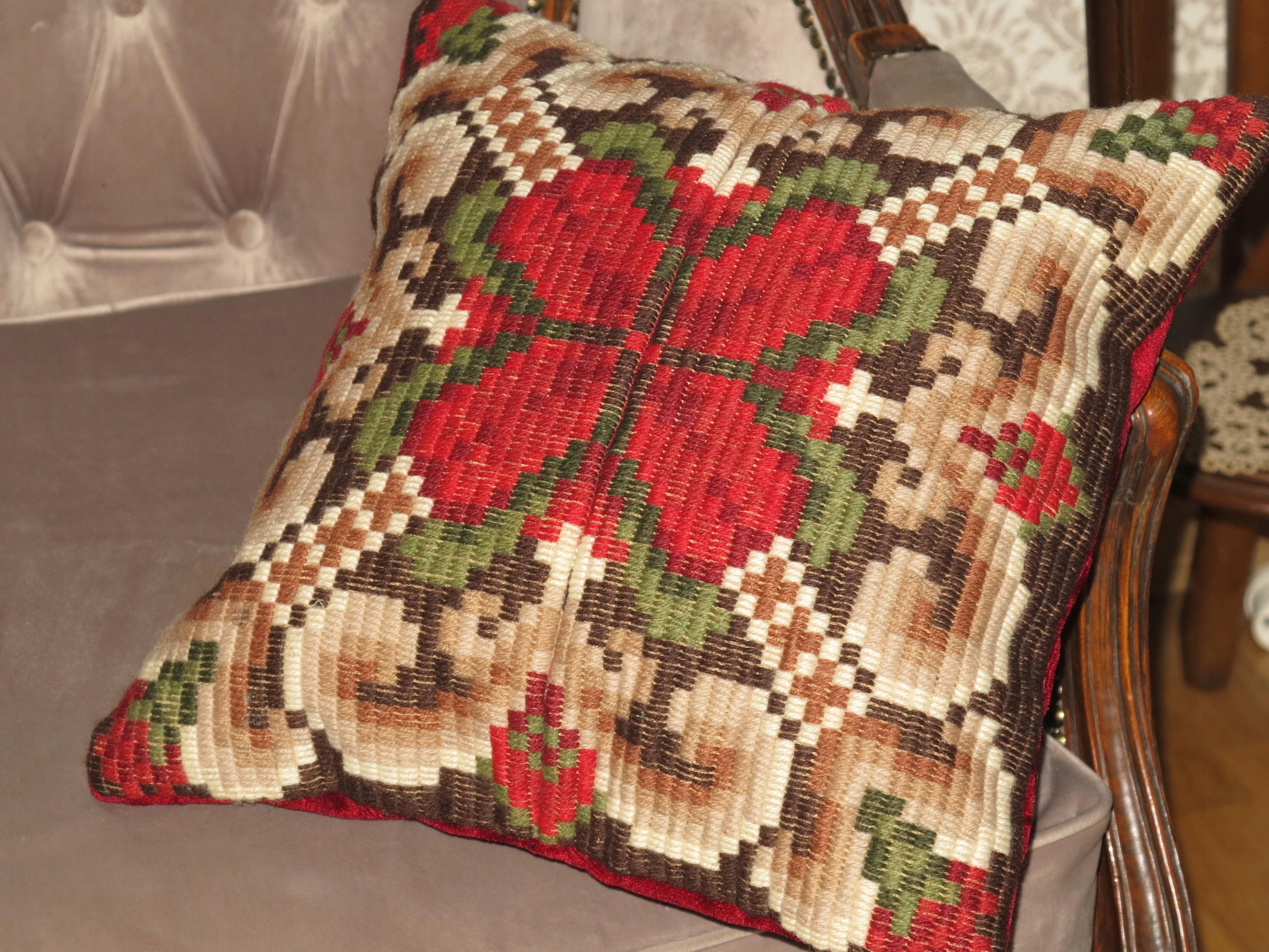На аукціоні представлена дуже декоративна новорічна подушка, вишита вовняними нитками. Б/у, в супер хорошому та якісному стані. Рекомендую