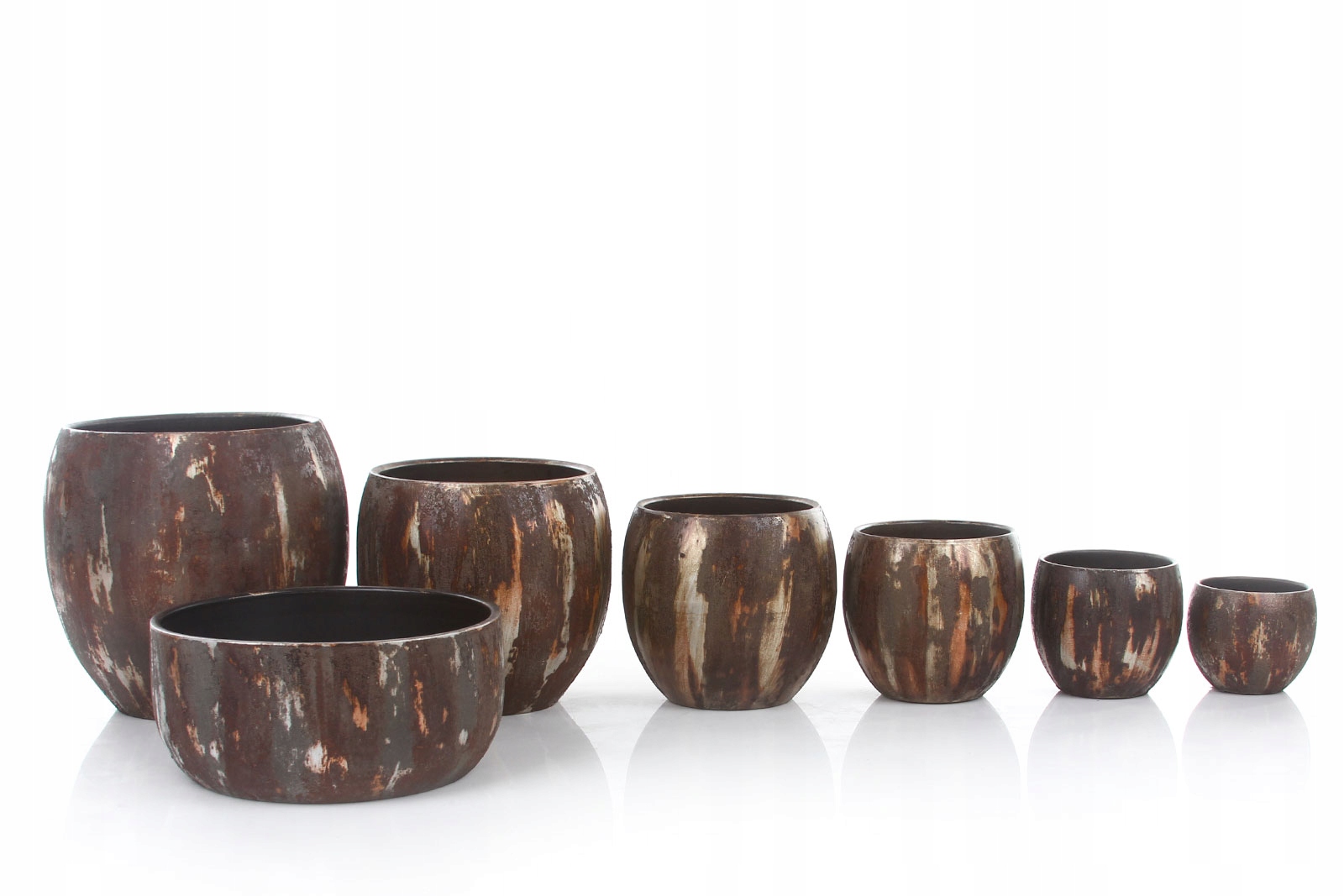 Елегантні круглі декоративні горщики для квітів з високоякісної кераміки з унікальною фактурою кольору іржі.