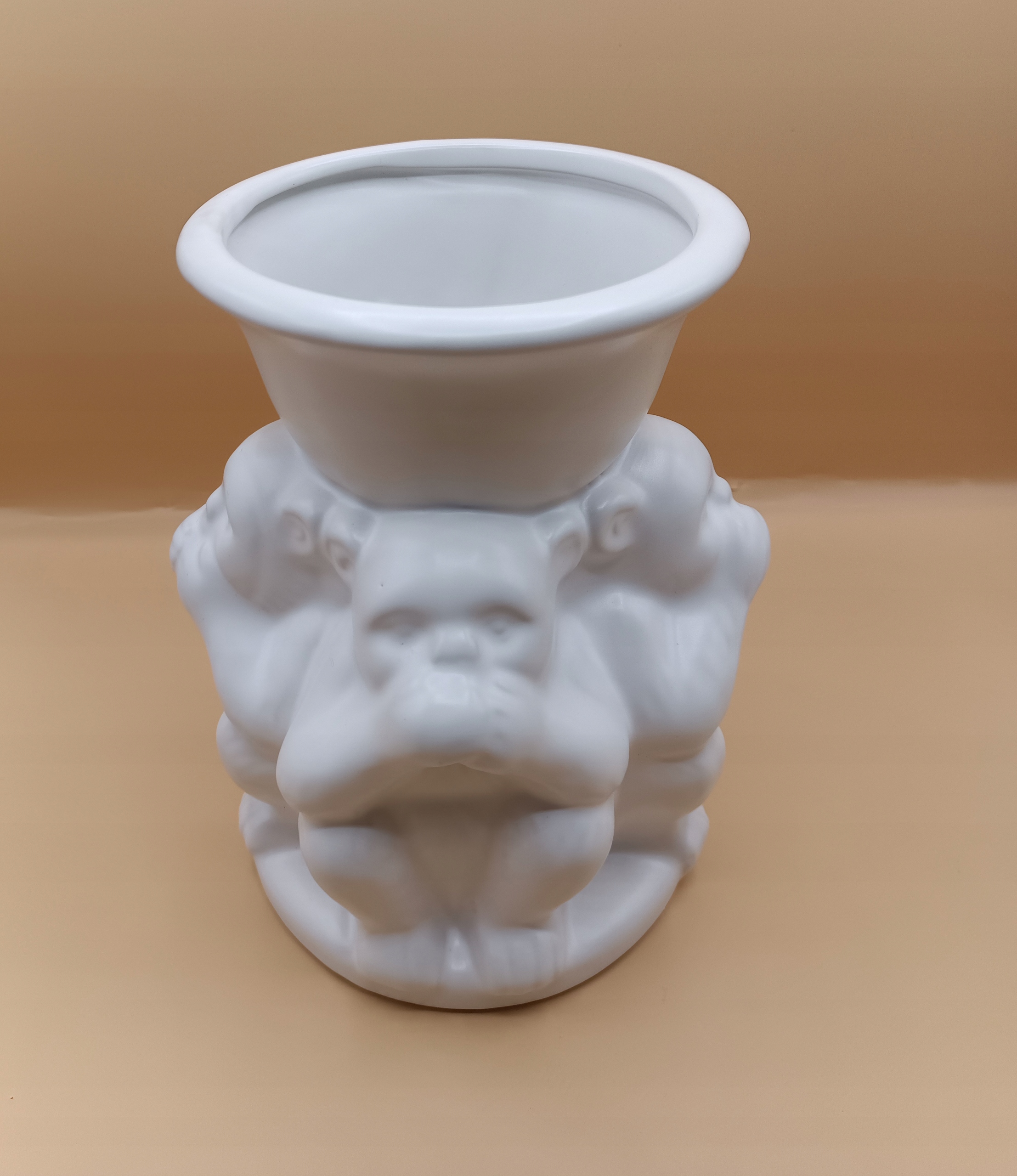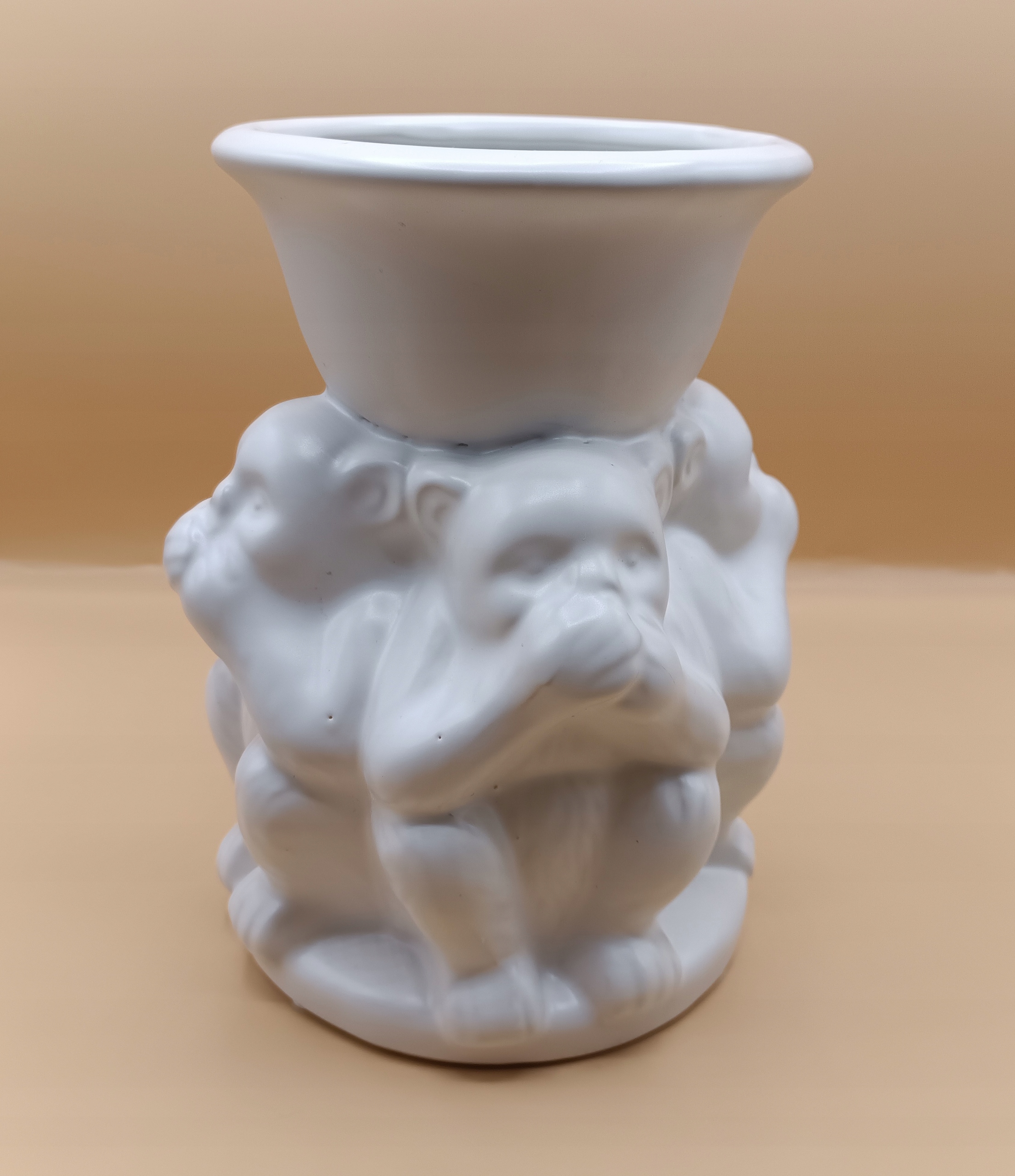 Унікальна біла ваза Три мавпи закривають усміхнене обличчя - ідеально підходить для подарунка