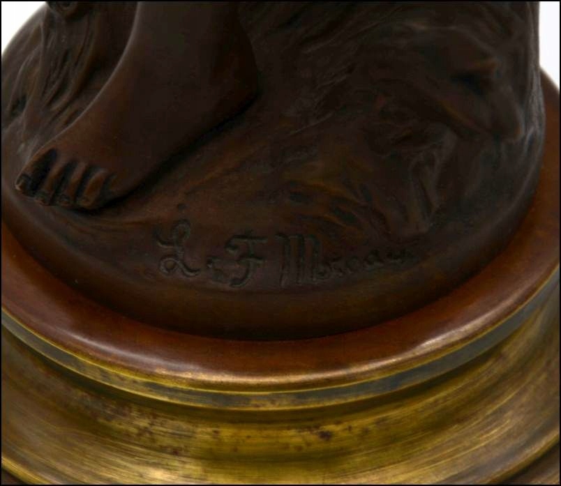 Скульптура підписана в нижній частині основи. Його авторами є брати Л. Ф. Моро, які творили в XIX столітті у Франції в місті Діжон і були відомі своїм живописом і особливо металевою скульптурою. Їхні роботи відомі у всьому світі.