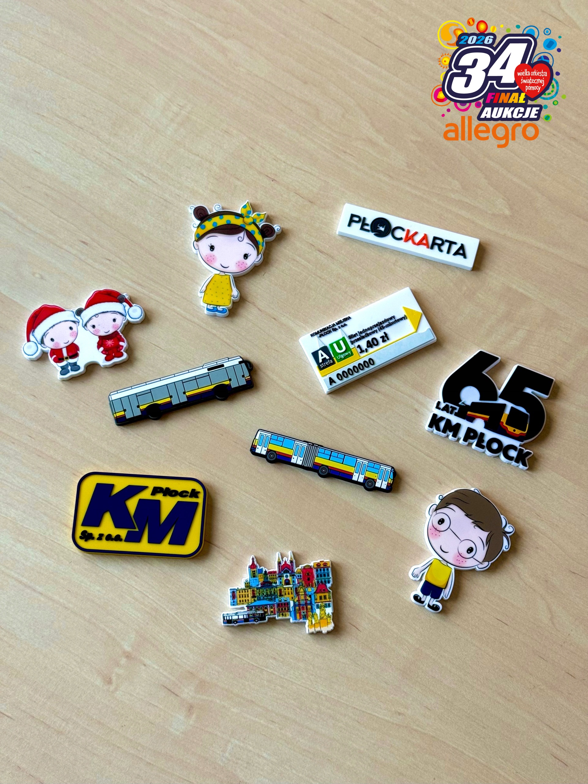 Для аукціону 34-го фіналу Великого оркестру різдвяної благодійності ми даруємо унікальну лімітовану колекцію магнітів «Нехай вас привабить KM-Płock», створену з нагоди 65-ї річниці громадського транспорту – Плоцьк.