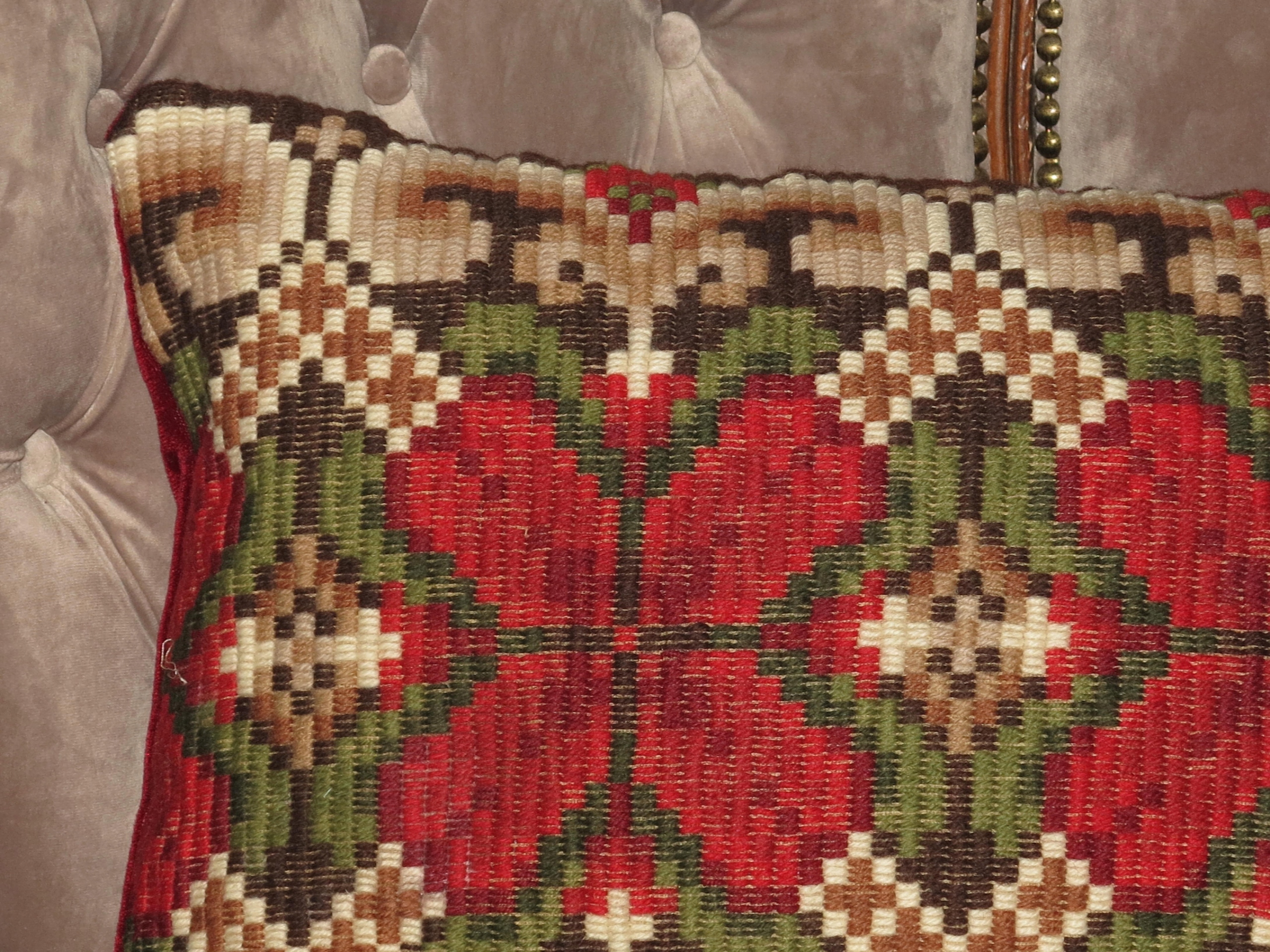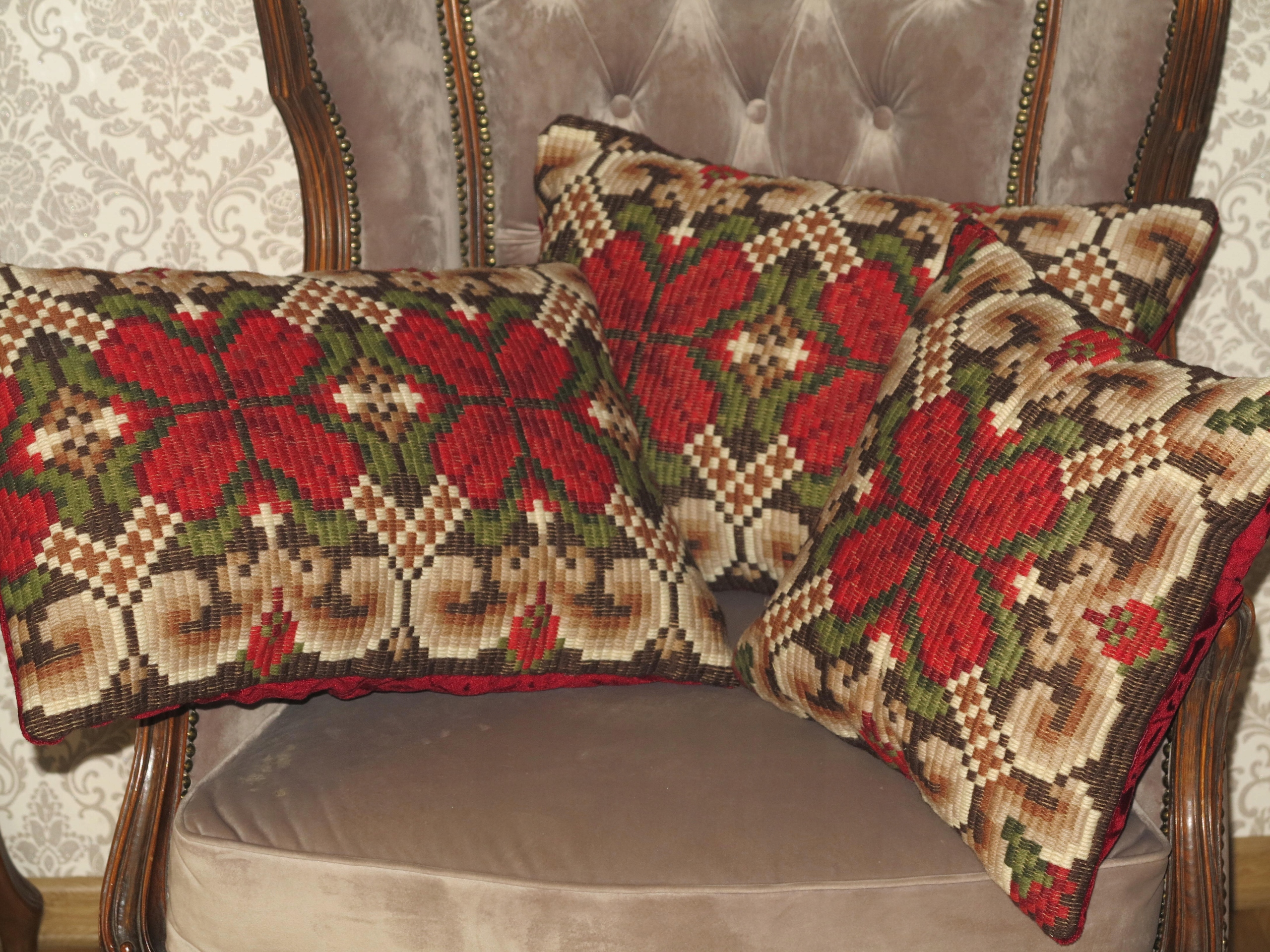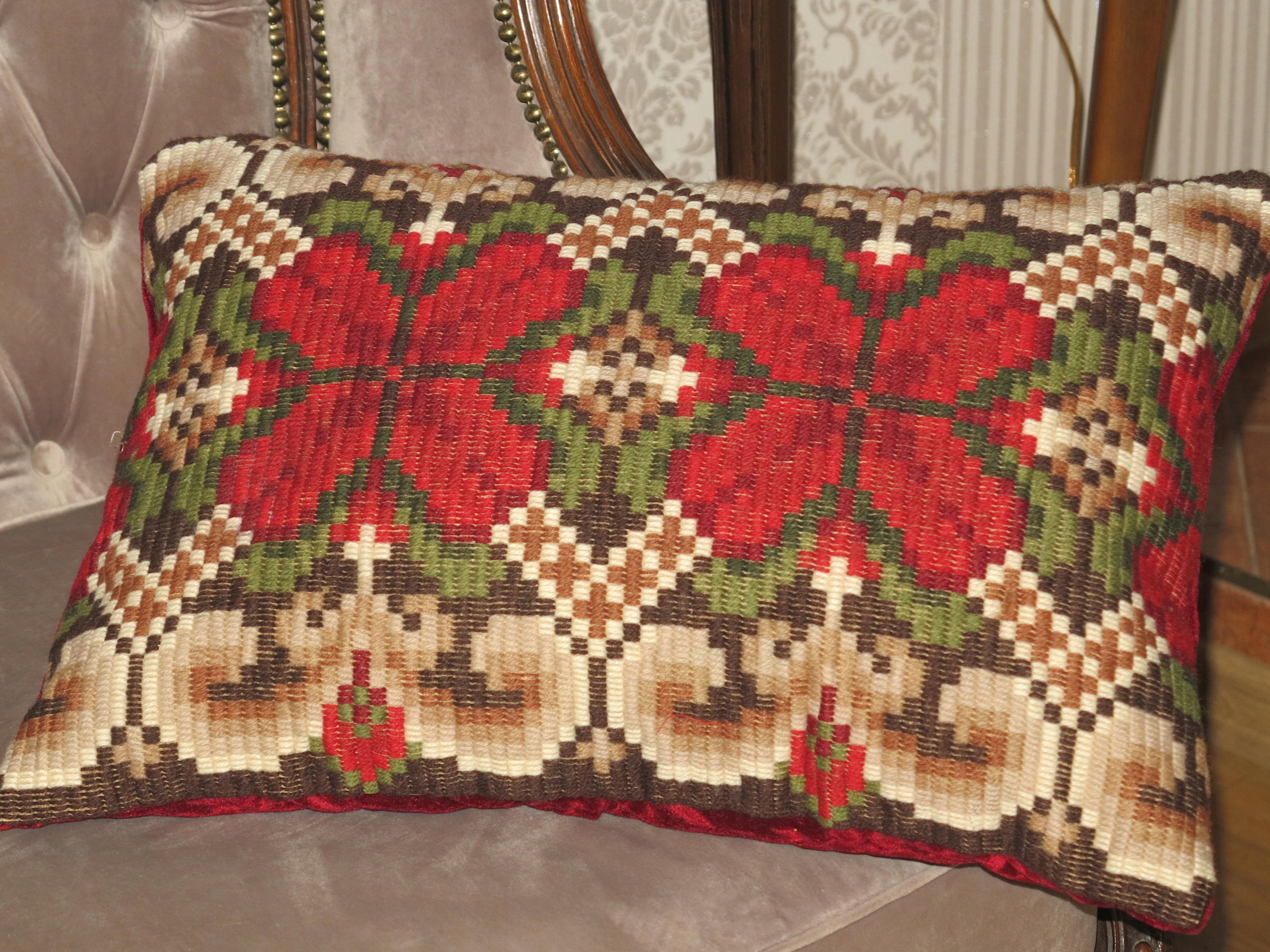 Унікальна красива велика подушка з вовняною вишивкою/оксамитова заливка. Природний №2