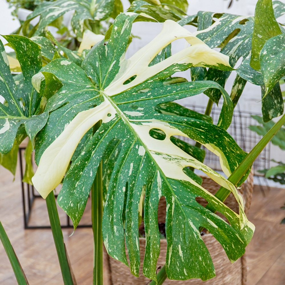 🟩Monstera deliciosa 'Thai Constellation' 🟩 — один із сортів, який зараз став дуже популярним. Мотив монстери вже кілька сезонів супроводжує нас у садівництві та широкому розумінні «дизайну». Сорт Тайське сузір’я радує забарвленням листя. Вони, звісно, діряві, як і у монстер, зеленого кольору з жовтими та кремовими плямами. Плями неправильної форми, і практично кожен лист відрізняється. Монстера — це висока ліана, яка з часом потребує опори, тому що під власною вагою вона може зламатися. У висоту може досягати кількох метрів. Шанувальників цього сорту не бракує, за ним варто полювати!