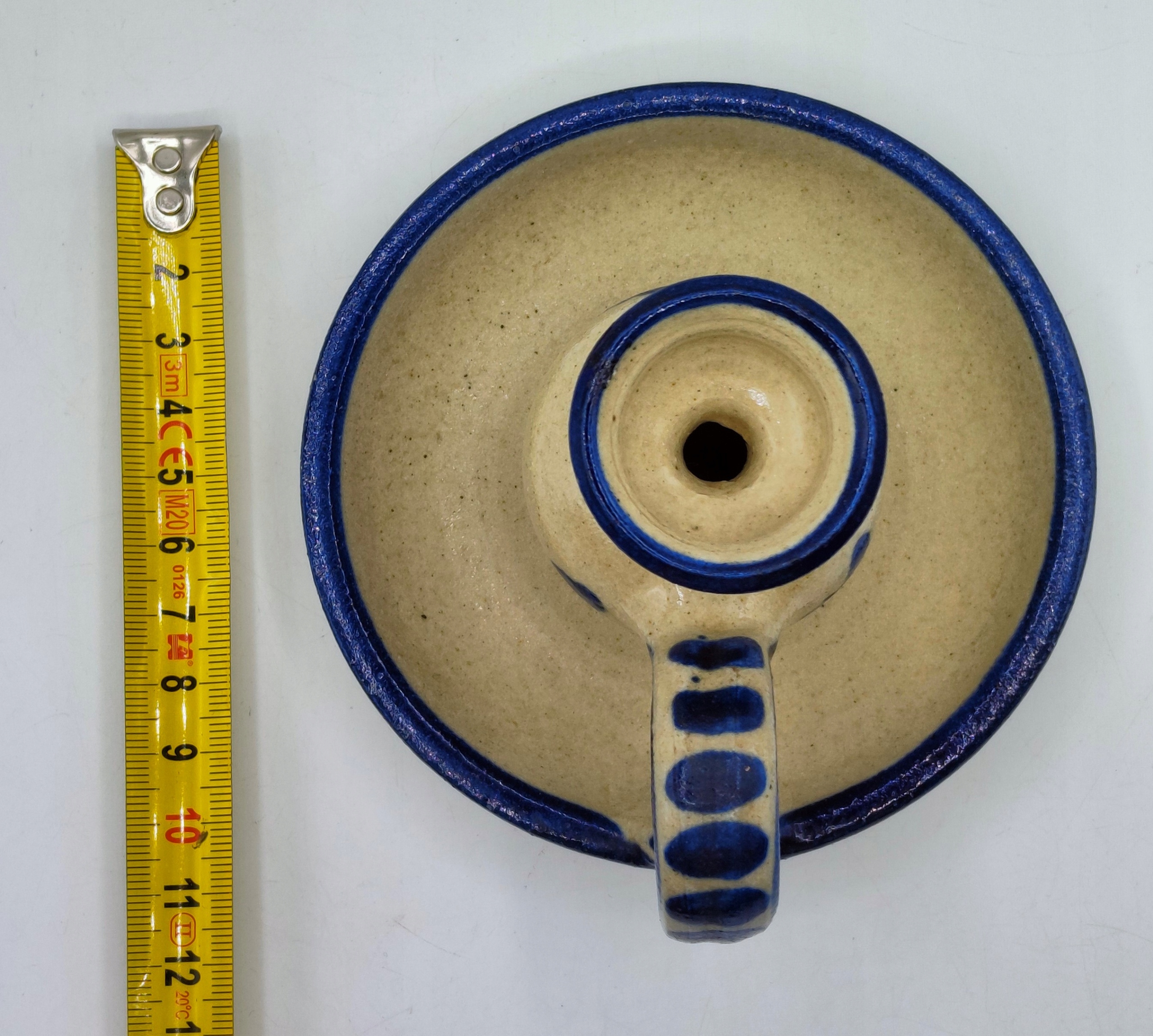 кераміка, старий предмет, красиві кольори. Важка, важить близько 220 грам, ширина з ручкою 12 см, без ручки 11 см, висота 9 см, отвір для святого 2,2 см. Тема віку, дуже хороший, стан колекціонера. Рекомендую.
