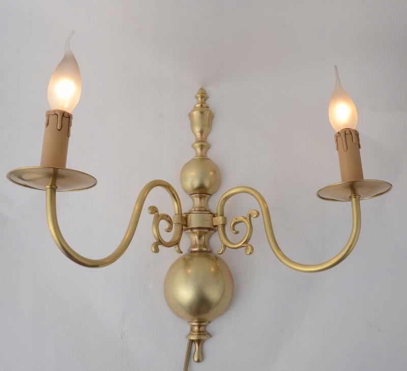 Тема аукціону - це неймовірно оригінальна подвійна стінова лампа з Іспанії з 1950 -х років. Стінна лампа виготовлена із золотої латуні. Місце, де настінна лампа кріпиться до стіни, має неймовірно оригінальну форму. Центрально встановив дві руки зсередини, чиї сильні переваги - тримачі свічок та декор на руках. Дивовижна точність, турбота про кожну деталь, простоту та незвичну форму роблять набір справжнім унікальним. Ми додаємо сертифікат, виданий Галерією Россар, що підтверджує місце та час походження об'єкта.