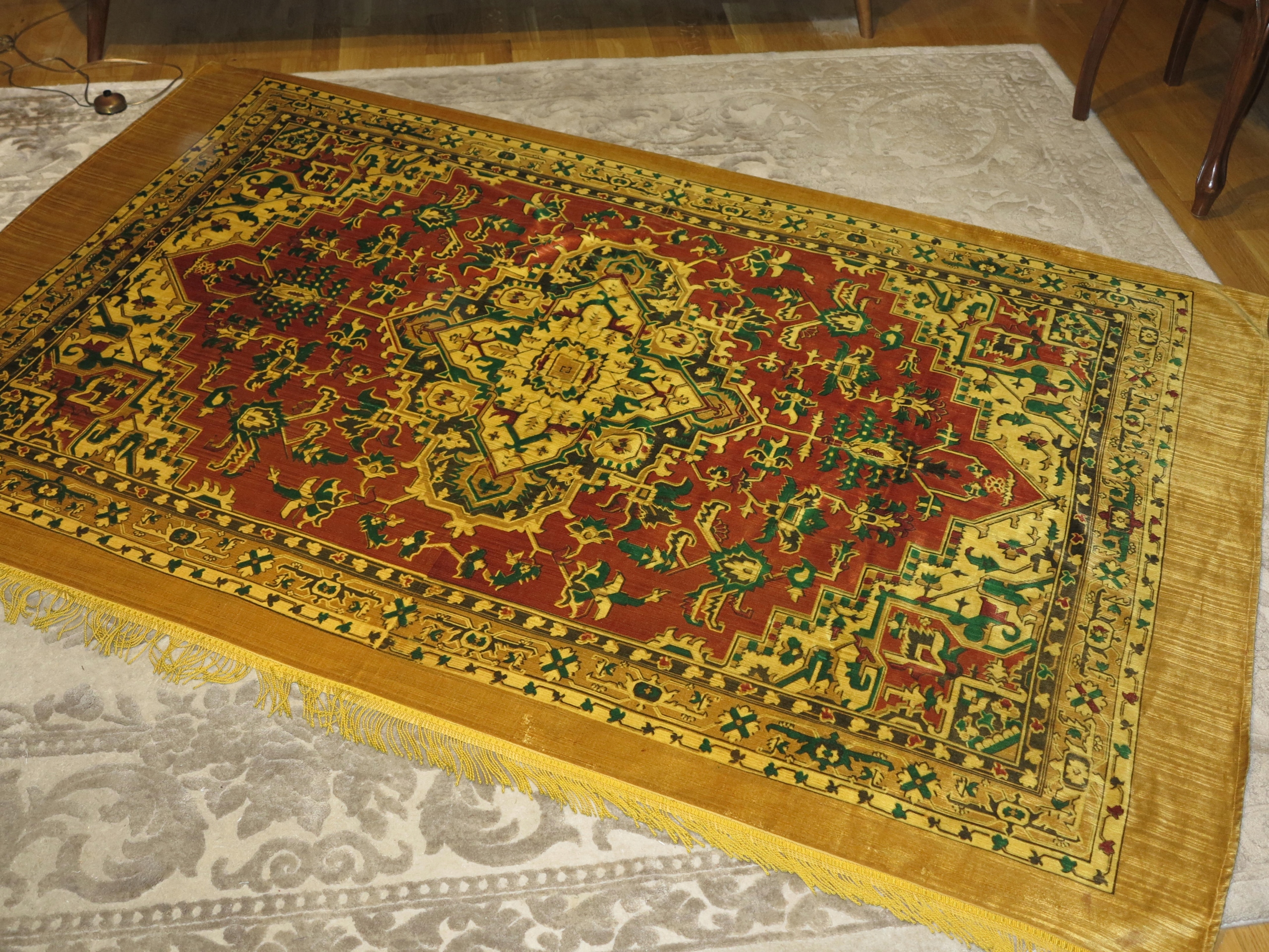 Унікальна секесія величезна стильна Кілім-Тапісерія, оксамитова бахрома Kapa 212/140