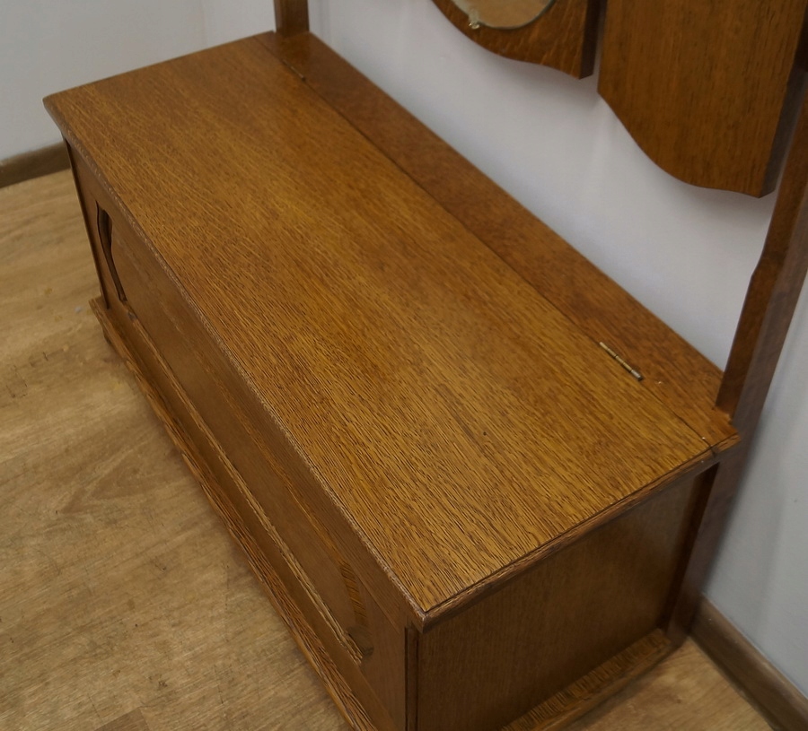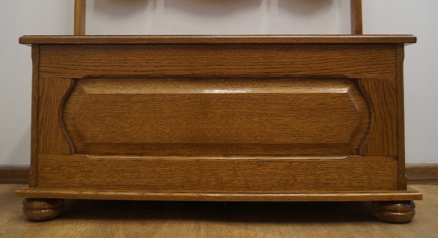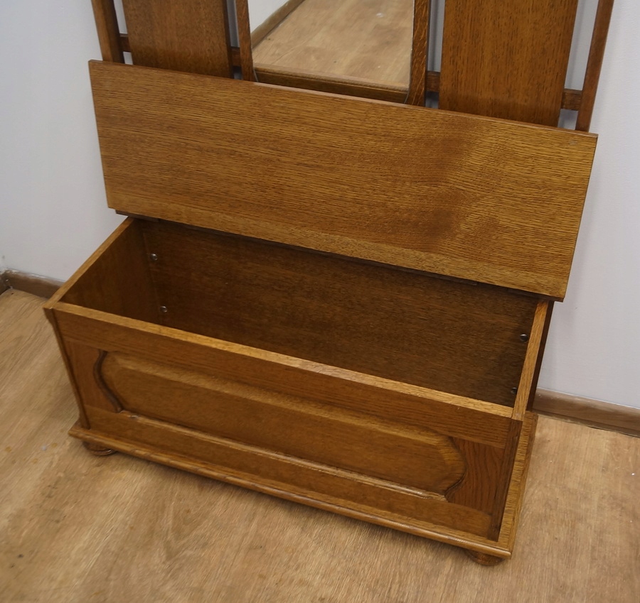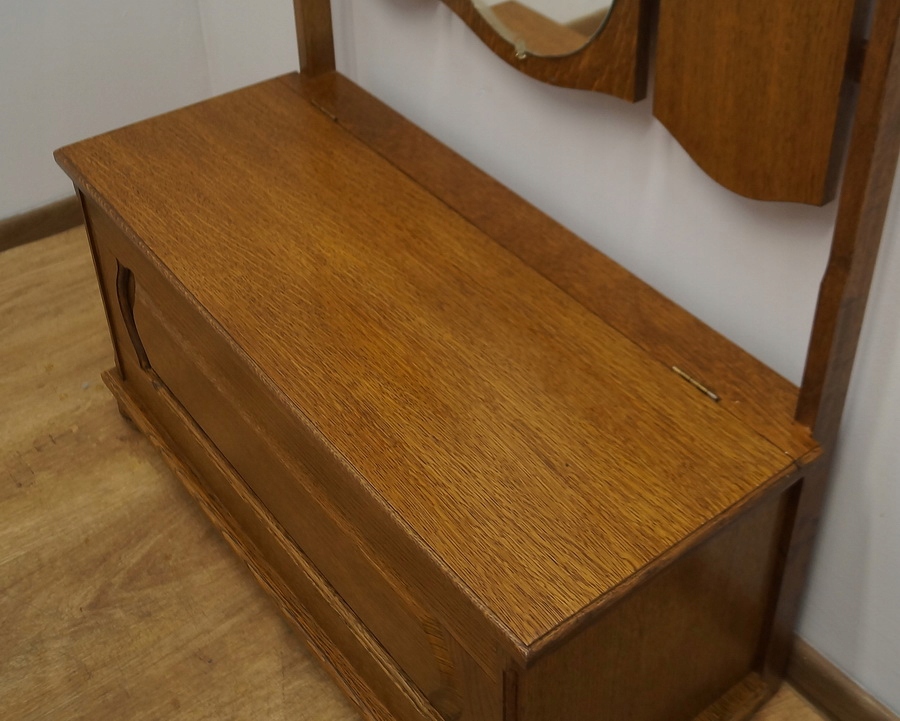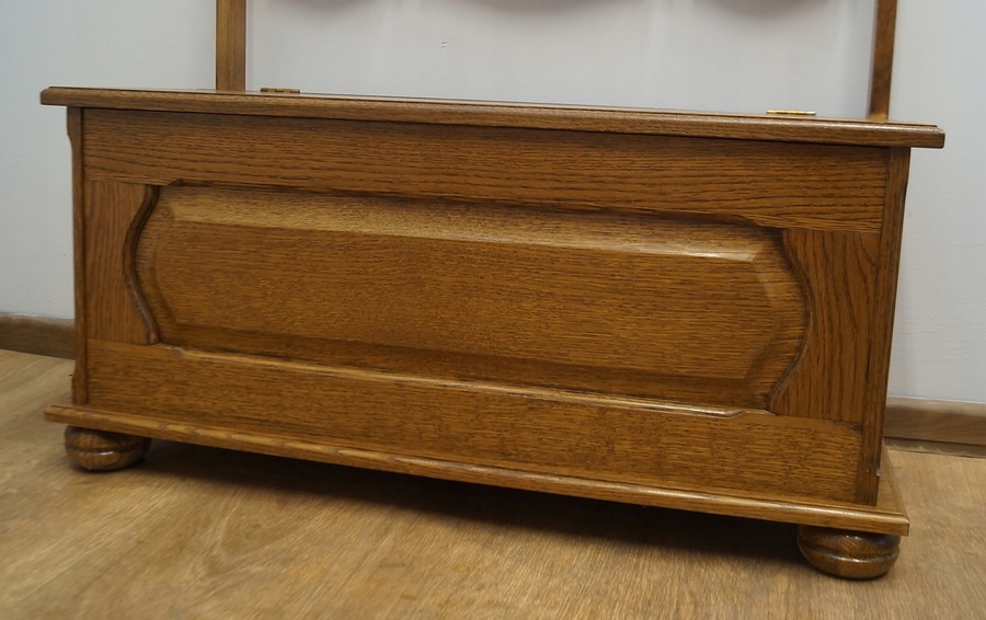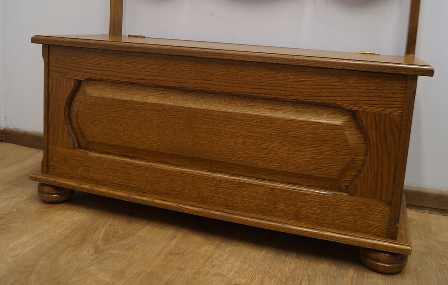 У верхній частині поличка, внизу вішалки, дзеркало та скриню, яка також служить сидінням. Виглядає дуже ефектно