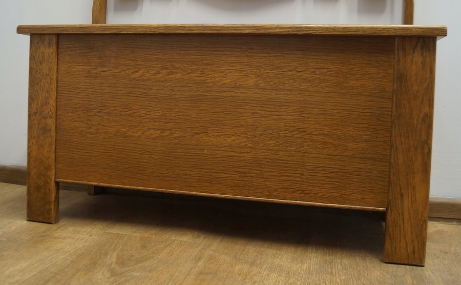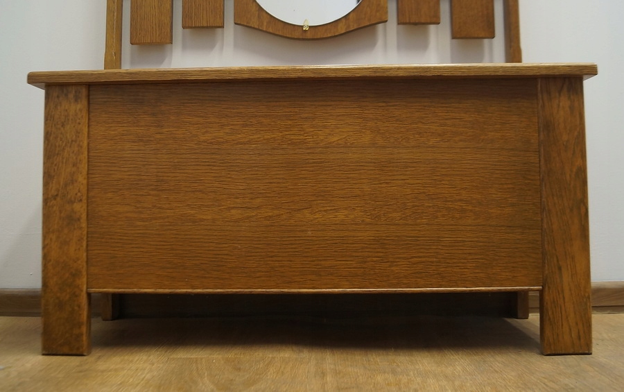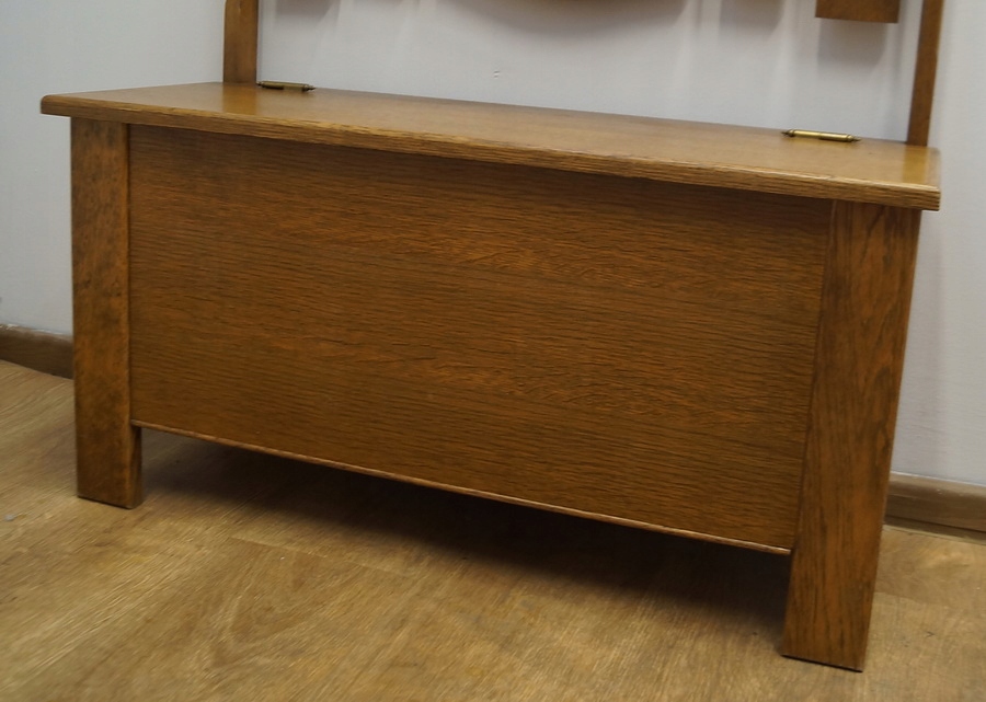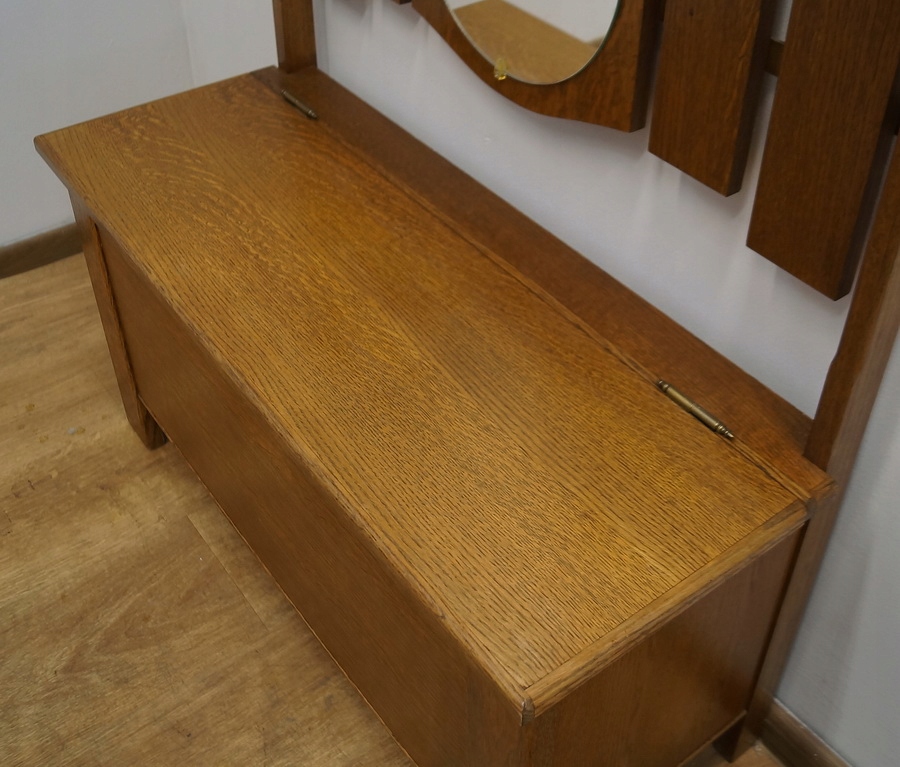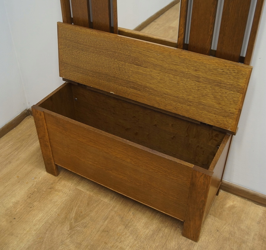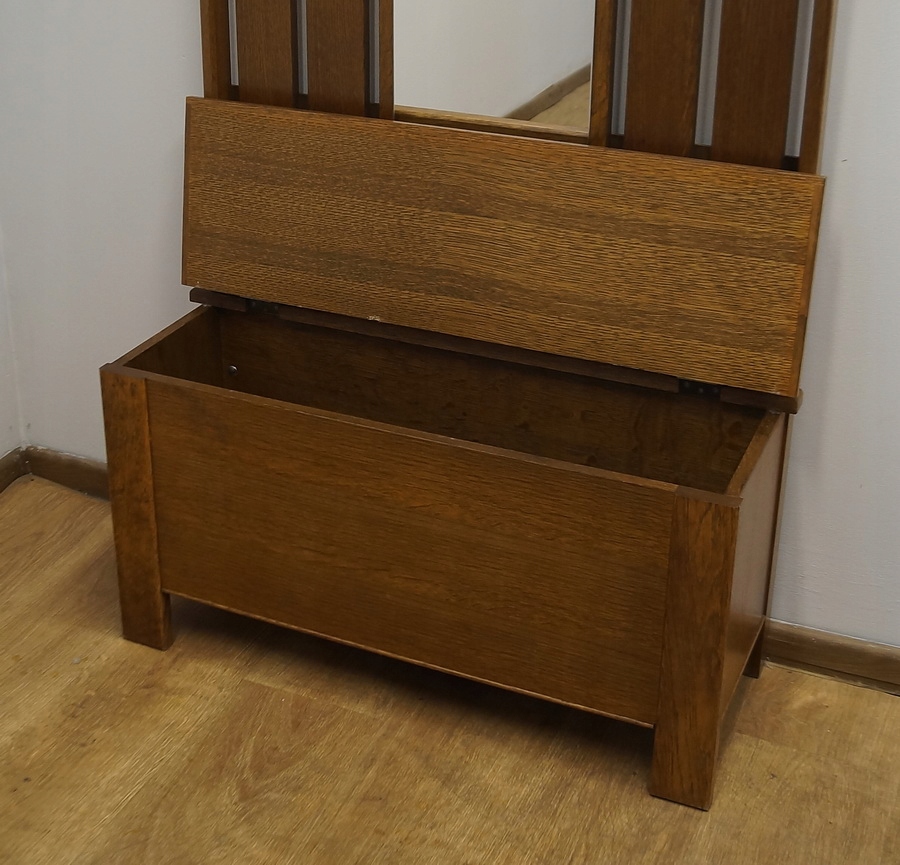 У верхній частині поличка, внизу вішалки, дзеркало та скриню, яка також служить сидінням. Виглядає дуже ефектно