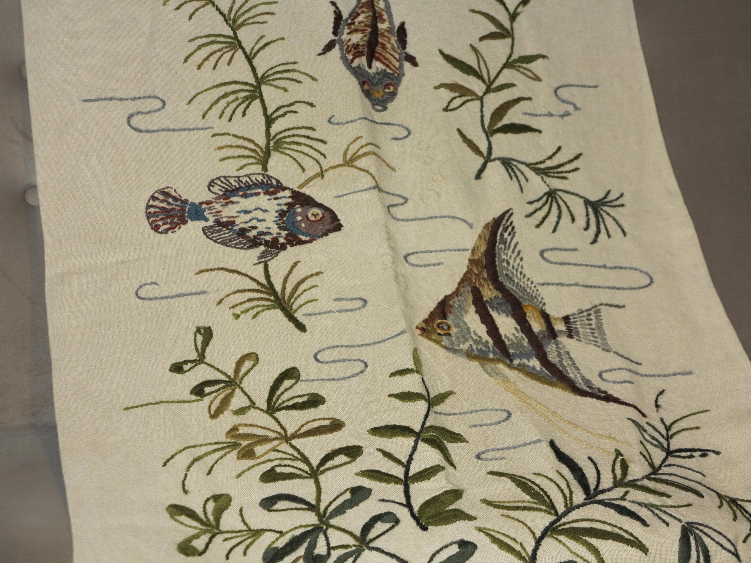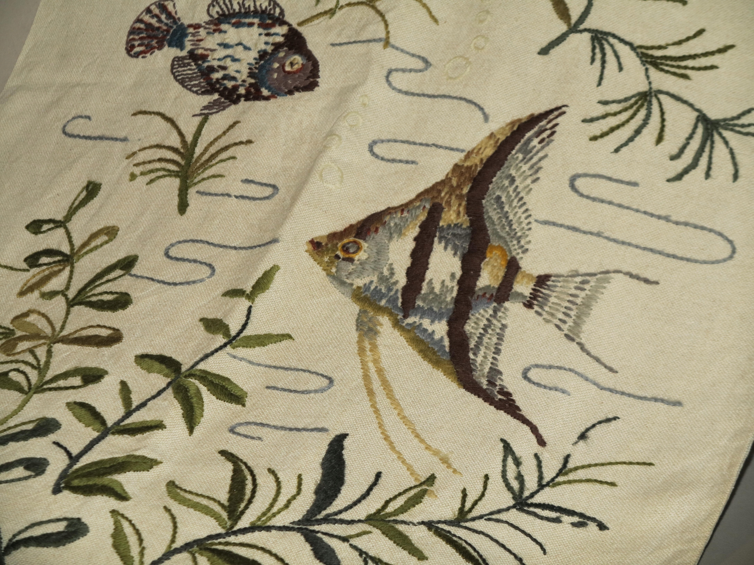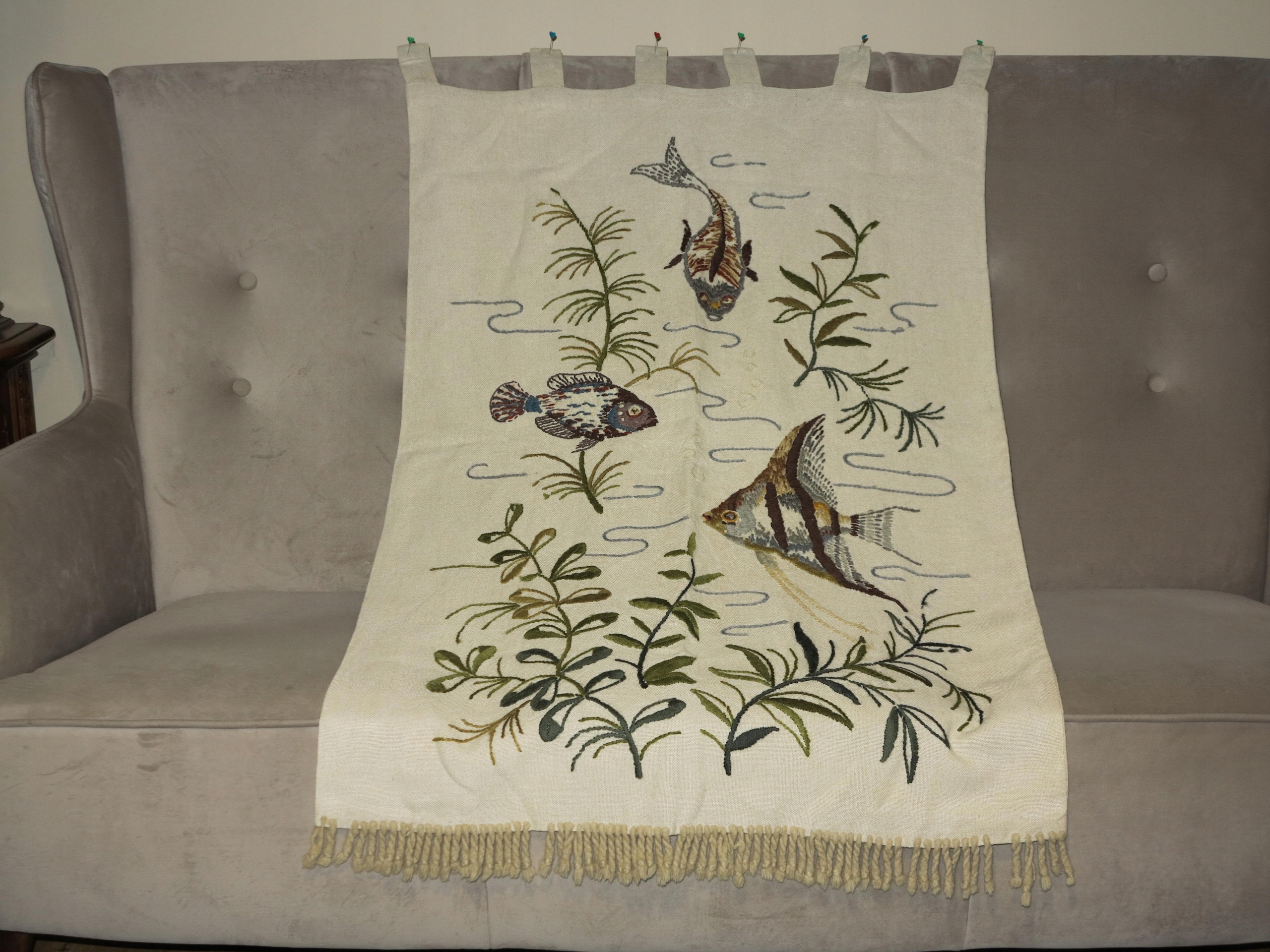 УНІКАЛЬНИЙ - ЕКЗЕМПЛЯР - ГАРНИЙ НАСТІННИЙ ЛЛЯНИЙ КИЛИМ "РИБКА В ВОДОРОСТЯХ" З РУЧНОТКАНОЮ ВИШИВКОЮ. ВИШИВКА ОПУКЛА, ВИКОНАНА РЕКУЛЬТНО.