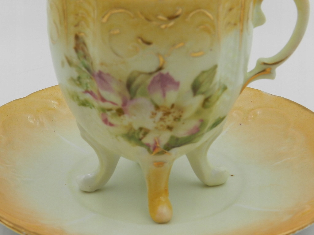 Фарфор має численні рельєфи та тиснення, підкреслені витонченою позолотою та надзвичайно красиву модельну ручку.