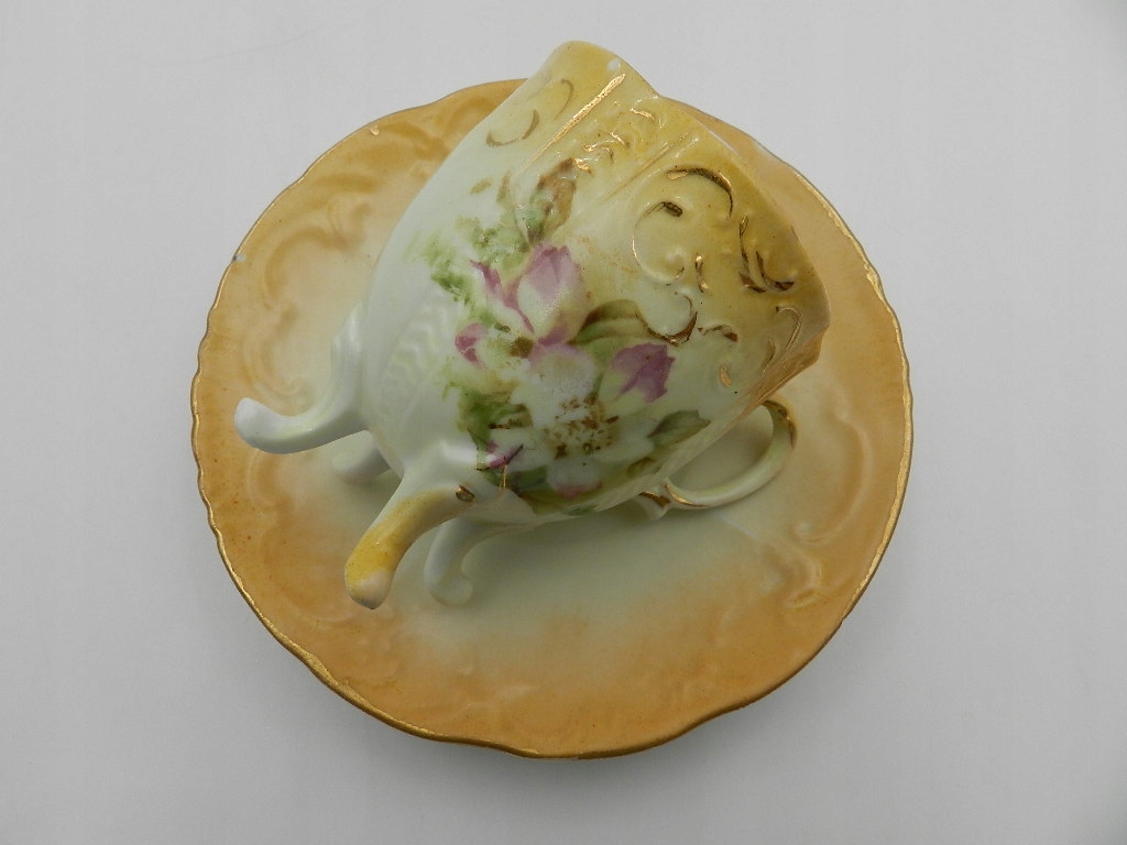 Ми раді представити вам чудову старовинну чашку вишуканої форми та елегантної форми на ніжних ніжках, які красиво моделюються.