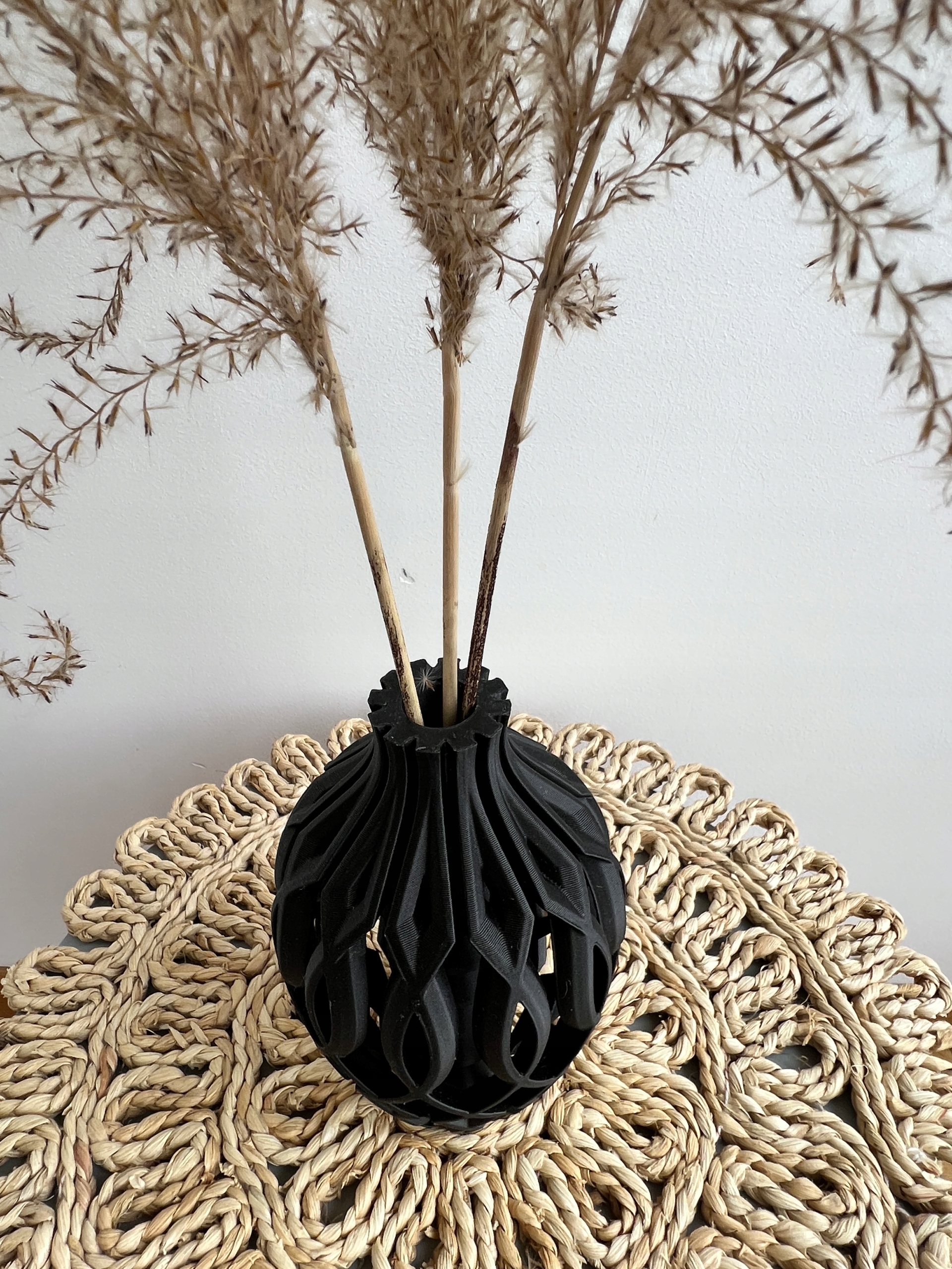Ця унікальна ваза була надрукована за допомогою технології 3D-друку. Він має легку і дуже цікаву структуру, а завдяки унікальній формі ідеально виглядає як окремо, так і з квітами. Чудово поєднується як з штучними квітами, так і з модними сухими травами. Він також ідеально підходить для LEGO квітів, які останнім часом набувають популярності. Але навіть порожня вона виглядає дуже ефектно, вона є дизайнерським елементом декору і стане неповторною прикрасою вашого інтер'єру.